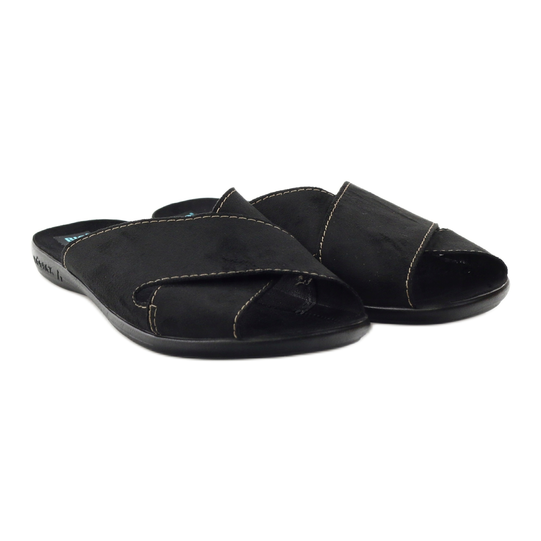 Klassische, bequeme zehenstegsandalen der polnischen Marke ADANEX, Modell 20310. Hergestellt aus hochwertigem Wildlederstoff, mit weichem Einsatz gefüttert mit Baumwollstoff – perfekt zum Tragen zu Hause. Eine moderne, flexible Sohle aus geschäumtem PU-Material absorbiert Mikrostöße beim Gehen und sorgt so für Komfort auch nach längerer Nutzung.