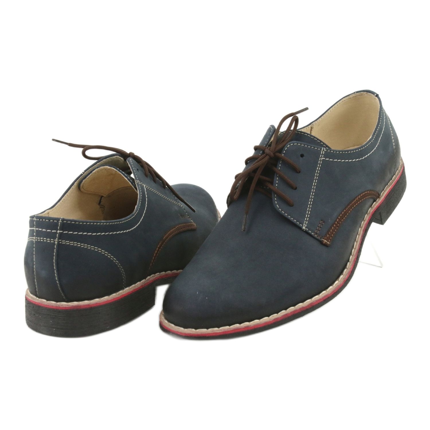 Elegante und universelle Schuhe von Moskała, Modell 761, komplett aus Naturleder gefertigt. Die klassische, abgerundete Spitze und der Schnürverschluss sorgen für Komfort und Passform, und der marineblaue Farbton eignet sich perfekt für formelle und lässigere Styles.