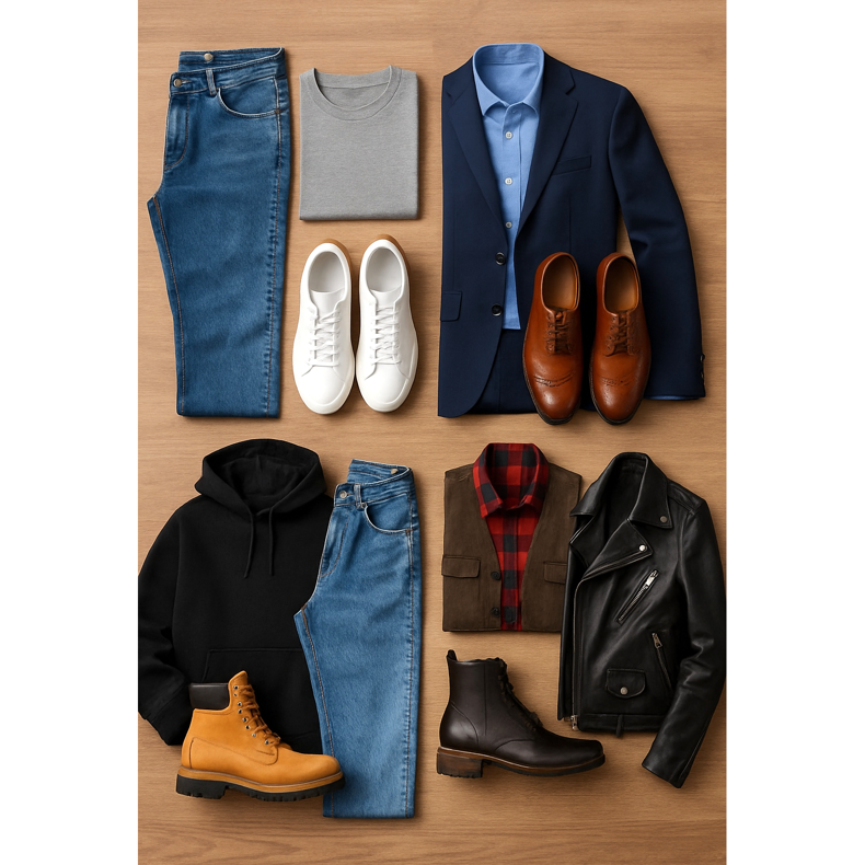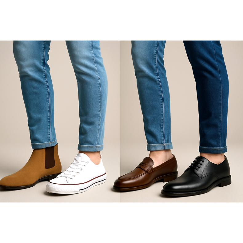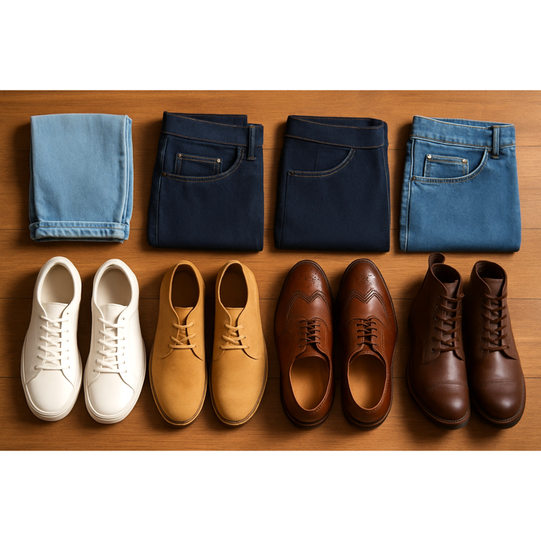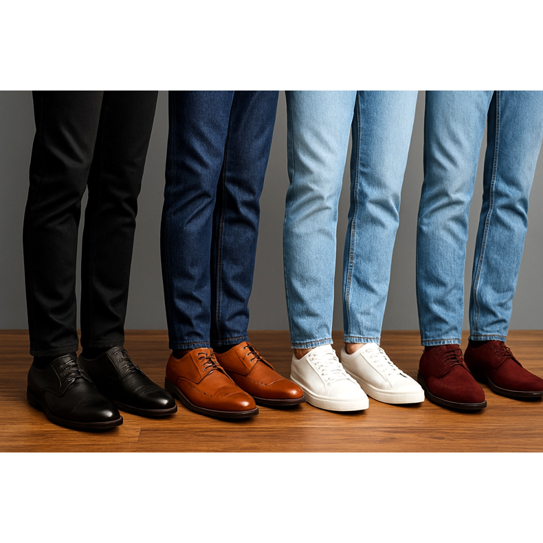 Ein umfassender Leitfaden zur Auswahl von Herrenschuhen für verschiedene Jeansstile. Lernen Sie die Styling-Regeln von Slim Fit bis Baggy kennen und entdecken Sie die perfekten Kombinationen.