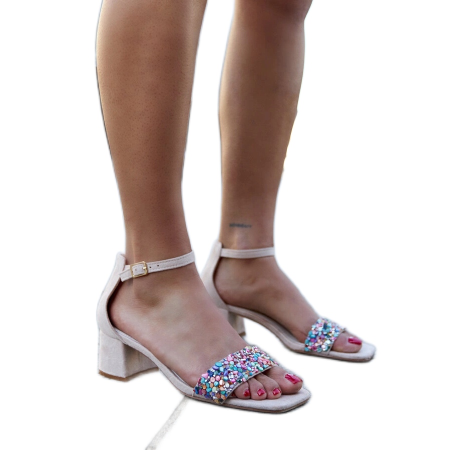 Inna marka High-Heel-Sandalen mit bunten Ghuson-Steinen beige