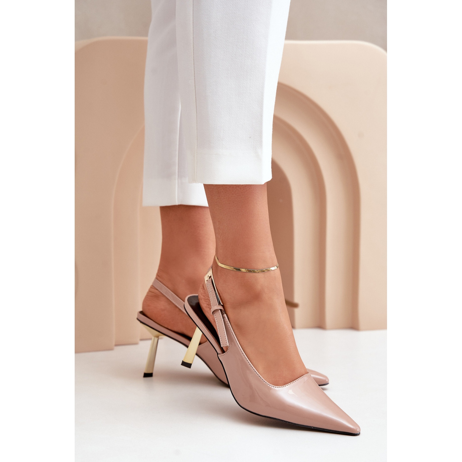 Der goldene, dekorative Stift mit einer Höhe von 8 cm betont ihren exklusiven Charakter, und die spitzen Nasen geben ihnen eine außergewöhnliche Eleganz. Dank des verstellbaren Gürtels mit der Schnalle passen die High Heels perfekt zum Fuß und bieten nicht nur einen modischen Look, sondern auch Komfort beim Tragen.