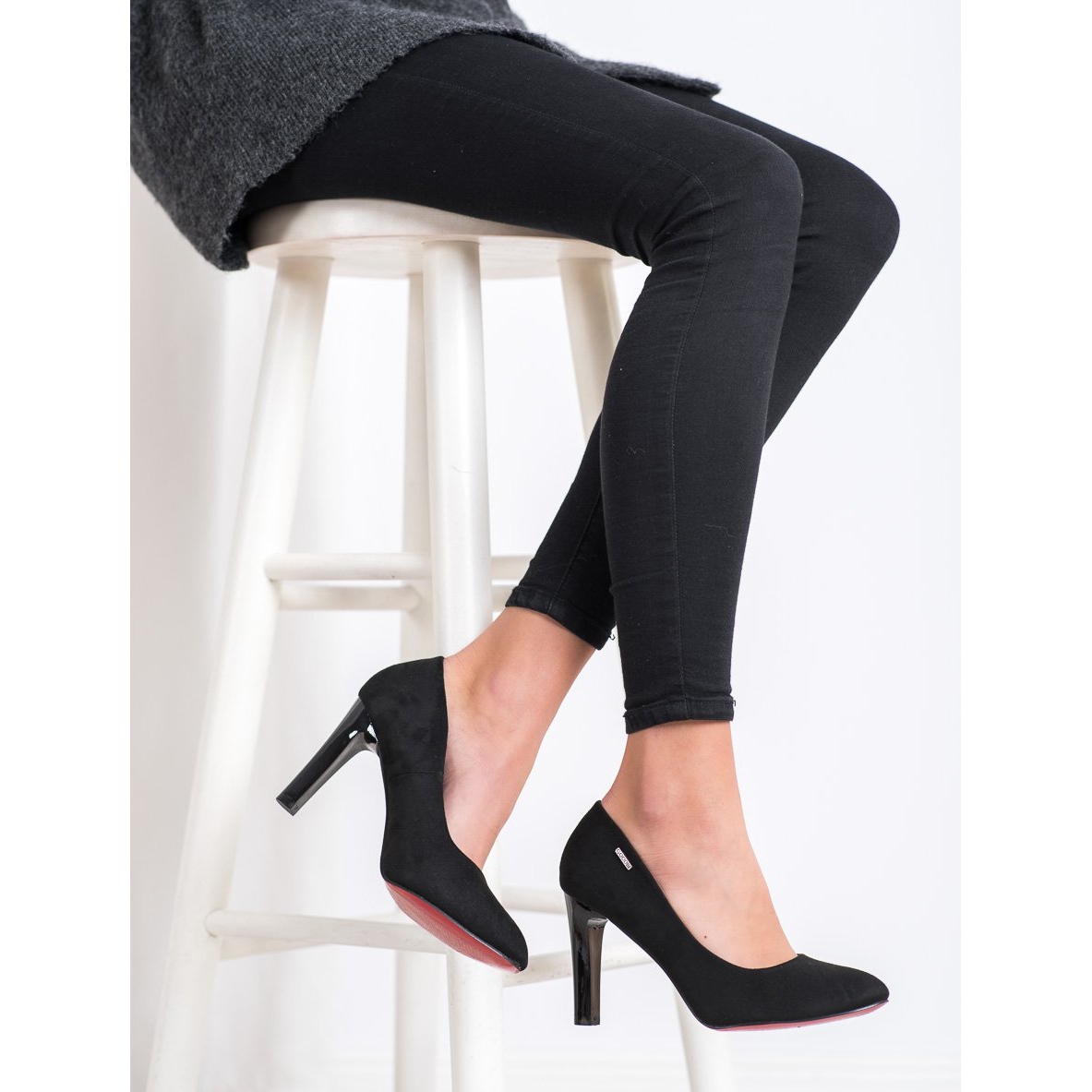 Aus hochwertigem ökologischem Wildleder gefertigt, sorgen sie nicht nur für ein attraktives Aussehen, sondern auch für Tragekomfort. Das Innere der Schuhe wurde sorgfältig mit Naturleder verarbeitet, was Freude und Komfort bei längerem Gebrauch garantiert. Eine runde Spitze und ein integrierter, versteifter Absatz sorgen für Stabilität und Eleganz und machen diese Pumps zur perfekten Ergänzung zu jedem Styling.