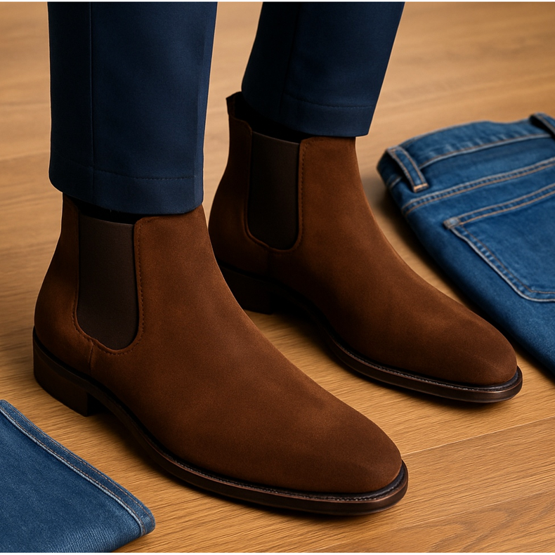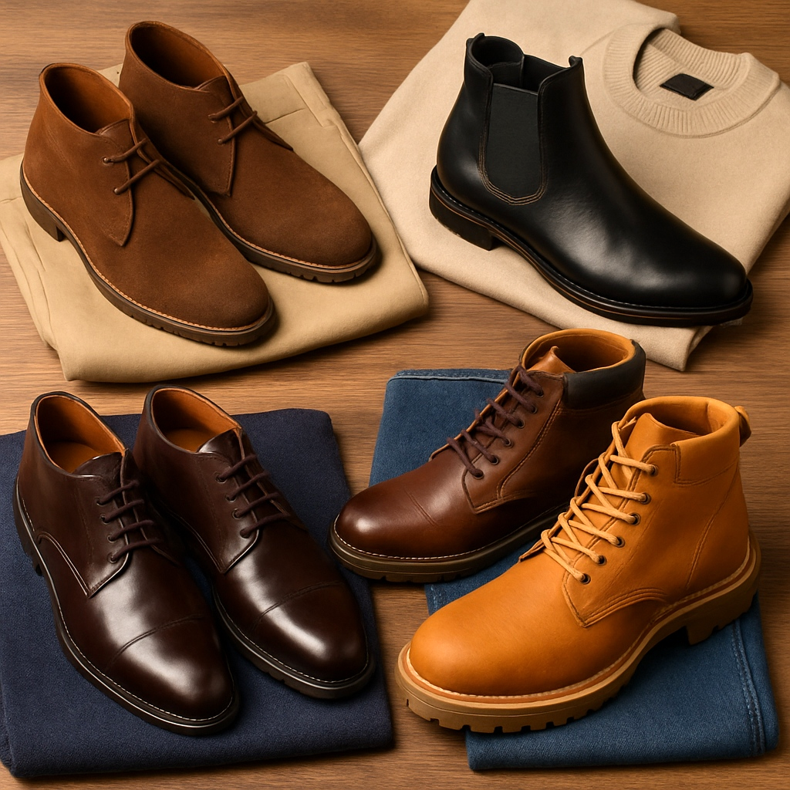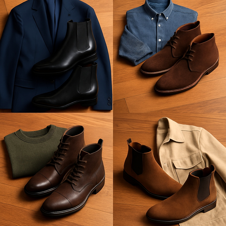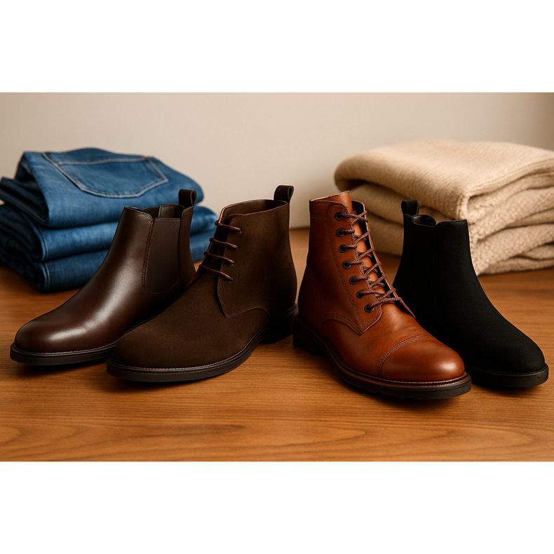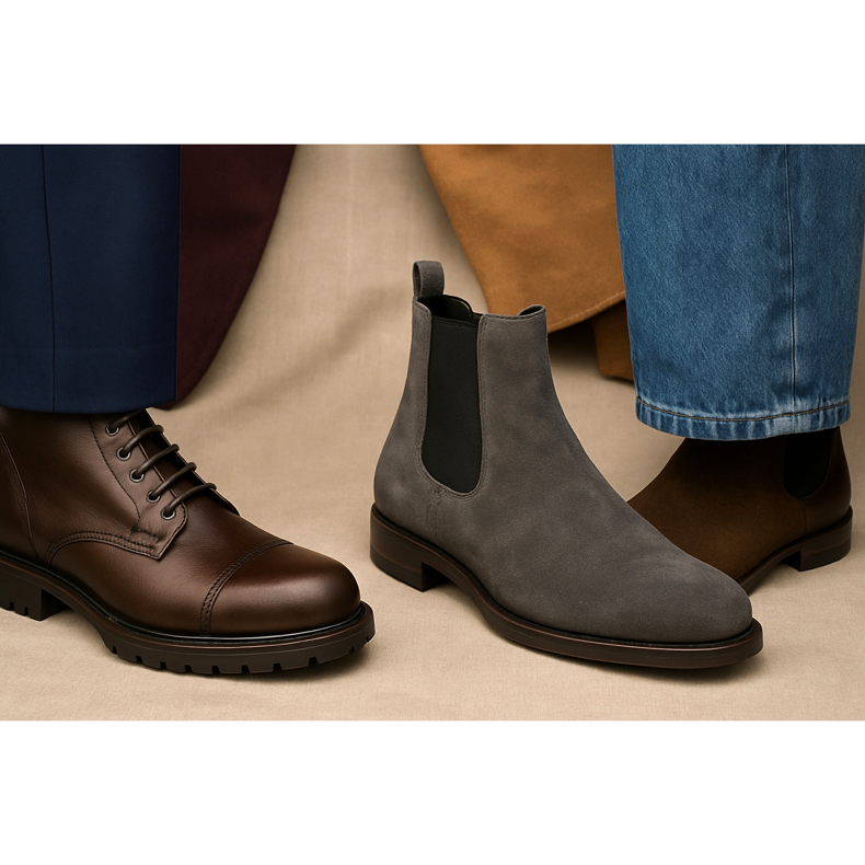 - Wachstum — Kleinere Männer: Wählen Sie schlanke Modelle (Chelsea, schmale Chukkas) statt massiver Bag-Boots.