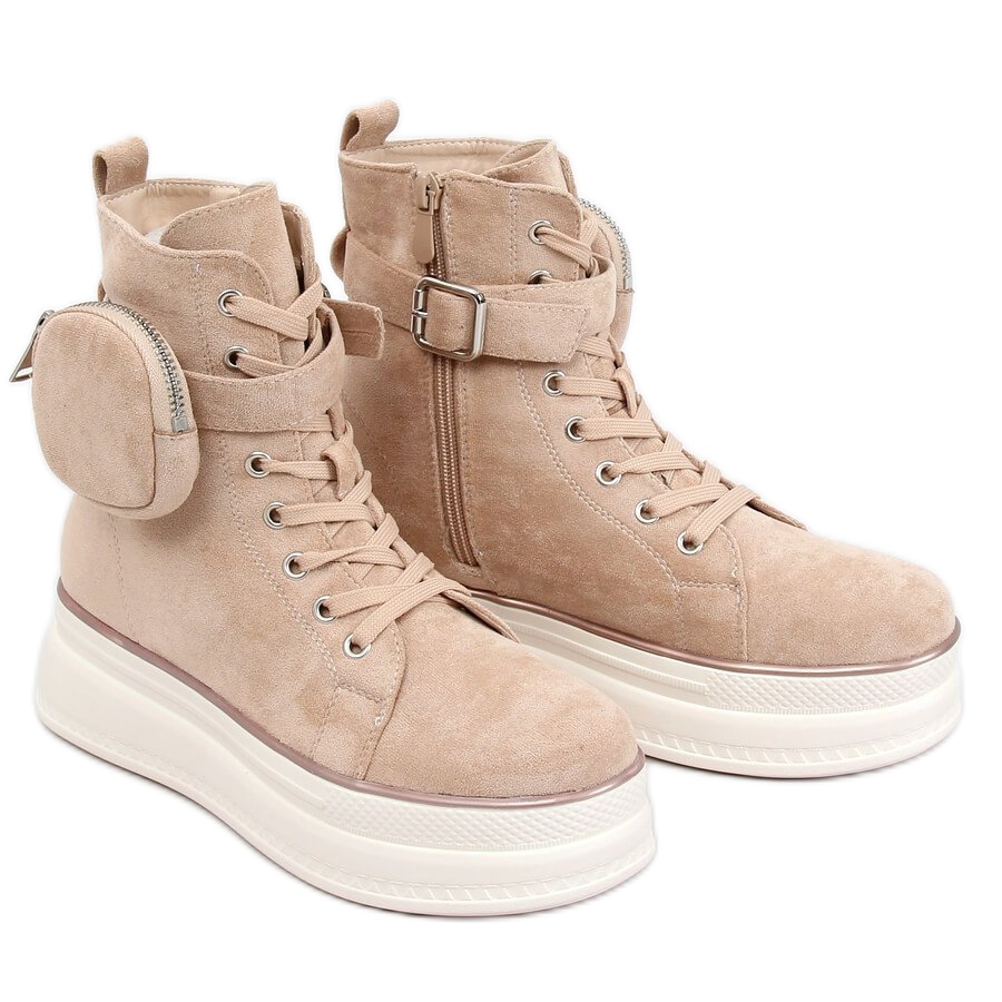 Wir präsentieren beige HO263 Beige High-Top-Sneaker, die modisches Design und Funktionalität vereinen. Diese Damen-Sneaker aus Wildleder zeichnen sich durch eine hohe Sohle aus, die ihnen einen einzigartigen Charakter verleiht. Ein zusätzlicher Vorteil ist die einzigartige Tasche, die sich leicht abnehmen lässt und so nicht nur für Stil, sondern auch für Funktionalität sorgt.
