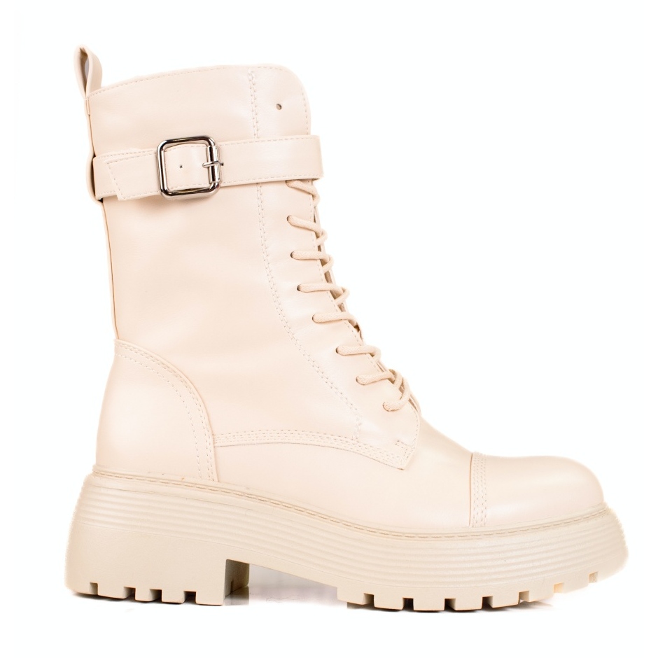 Die hohen beige Arbeiterstiefel mit Schnürung für Damen von Shelovet sind eine zeitlose Wahl für jede Frau, die Wert auf Stil und Komfort legt und unabhängig von den Wetterbedingungen modisch aussehen möchte.