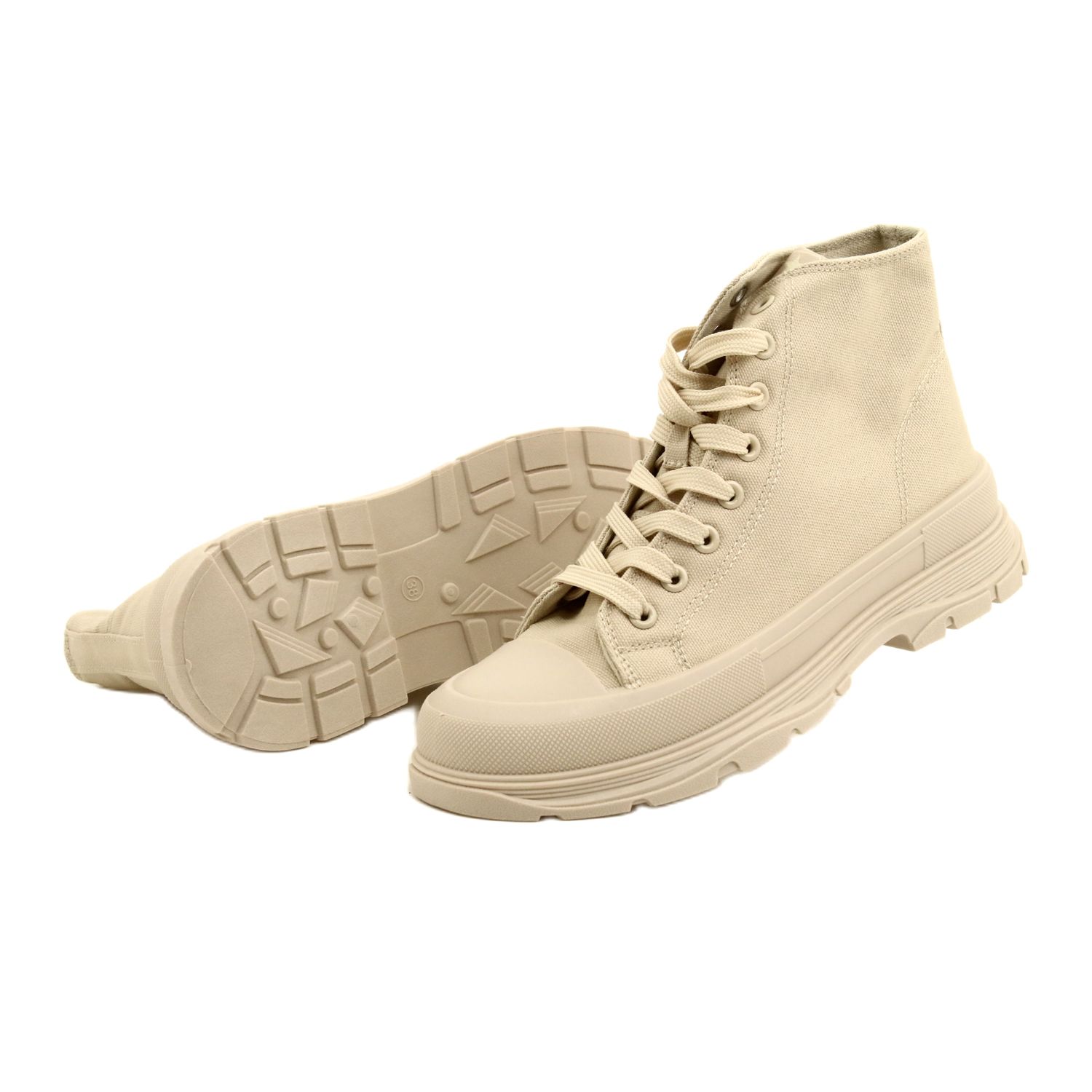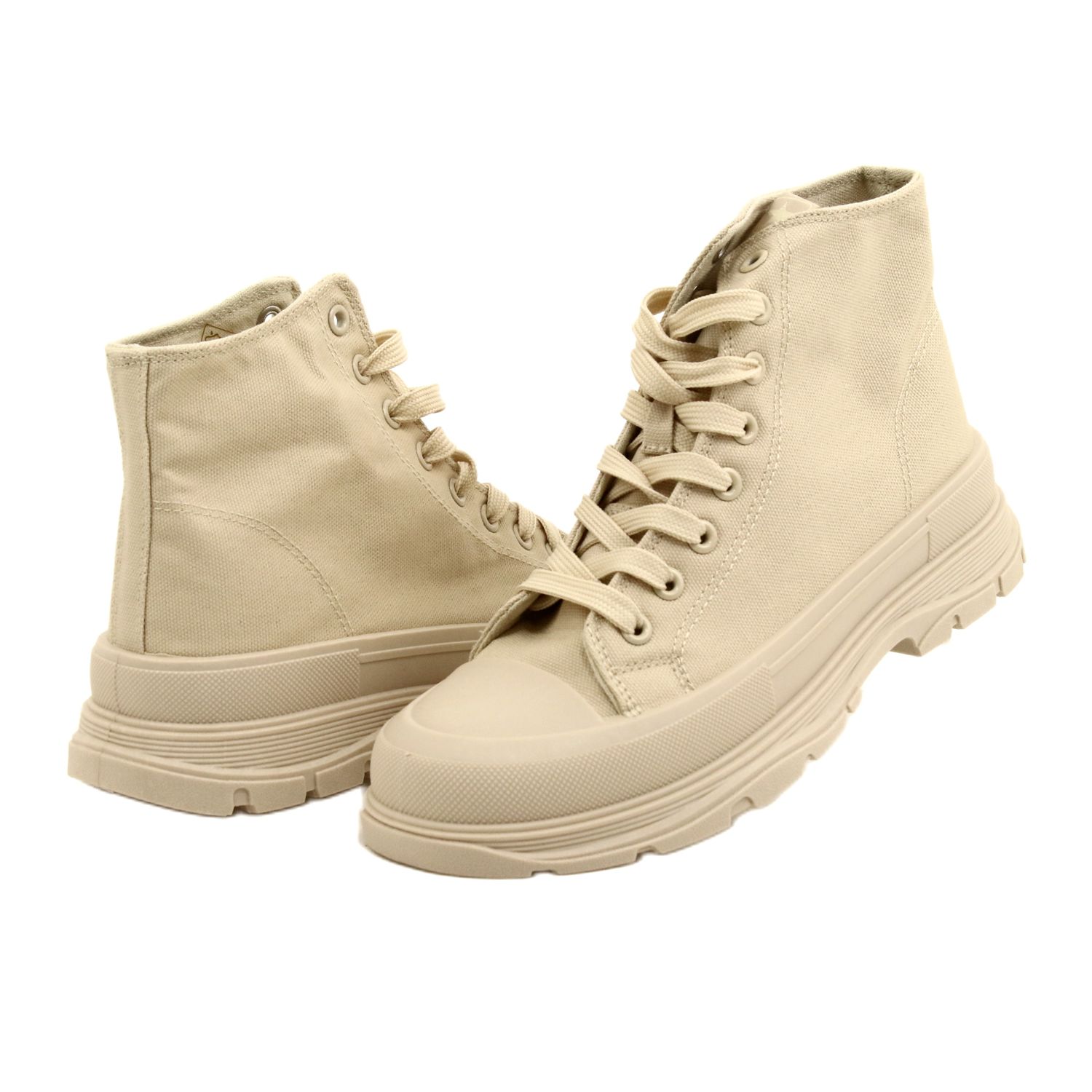 Klassisch und gleichzeitig modern - hohe Nachrichten in einem warmen Beige -Farbton sind jeden Tag ein bequemes und stilvolles Angebot. Der hohe Obere erreicht den Knöchel und eine stabile Plattform mit einer Höhe von 4 cm zur Figur leicht abschließend und behält den Komfort des Tragens bei. Das obere und innen aus luftige Stoff und die Gummi -Sohle sorgt für einen guten Griff. Freundlich für alltägliche Stilisierungen - von lässigen Kleidern bis hin zu Jeans.