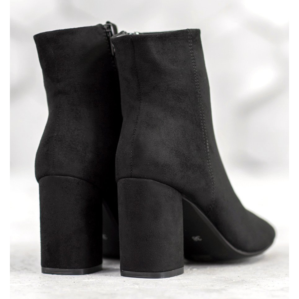 Eleganz und Komfort in einem – schwarze Stiefeletten mit hohen Absätzen der Marke Super Mode. Diese stilvollen Schuhe sind die perfekte Wahl für Frauen, die modisch aussehen und sich wohl fühlen möchten. Durch die klassische schwarze Farbe passen die Stiefel perfekt zu verschiedenen Stilrichtungen – von romantischen Kleidern über lässige Röcke bis hin zu eleganten Hosen.