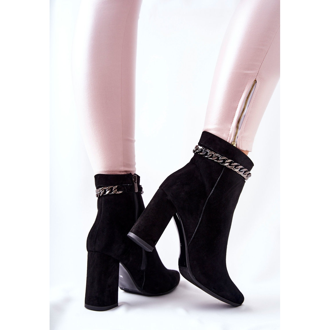 Gleichzeitig elegant und praktisch - diese hohen Laura Messi -Stiefel sind ein ideales Angebot für kühlere Herbst- und Wintertage. Hergestellt aus natürlichen Wildlederleder, mit einer spektakulären Kette am oberen oberen Ketten dekoriert, ziehen Augen an und verleihen Ausdruck. Ein klassischer Mandelzeh und eine stabile Ferse in Form eines Pfostens geben den Schuhen eine weibliche Figur, ohne den Komfort aufzugeben.