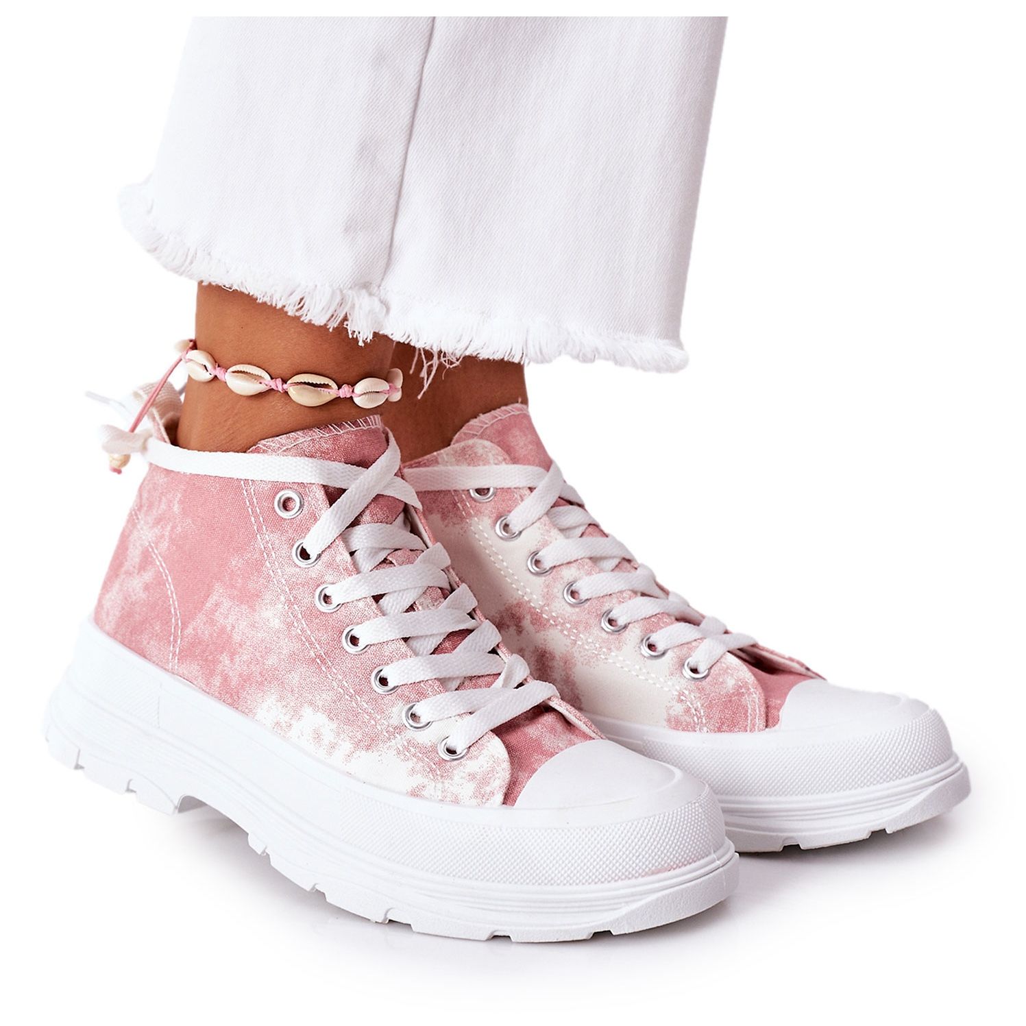 Details: FJ1 Hohe rosa Sneakers auf großer Sohle mit Batik-Trissy-Effekt weiß