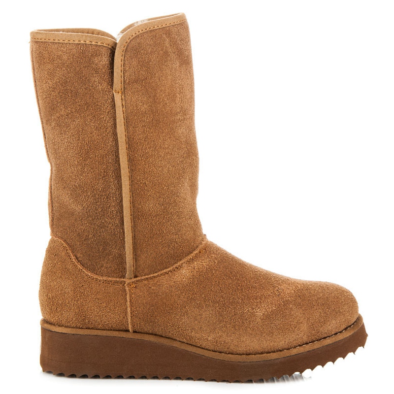 Mukluks verfügen über einen Slip-on-Verschluss, der das An- und Ausziehen der Schuhe erleichtert, und schützen durch ihre Höhe die Beine effektiv vor Kälte. Darüber hinaus sorgt die Isolierung im Inneren des Schuhs für angenehme Wärme, während das 3,5 cm hohe Plateau ihm dezente Eleganz verleiht. Die dominierende braune Farbe mit beigem Akzent passt zu vielen Stilrichtungen, sowohl lässig als auch eleganter.