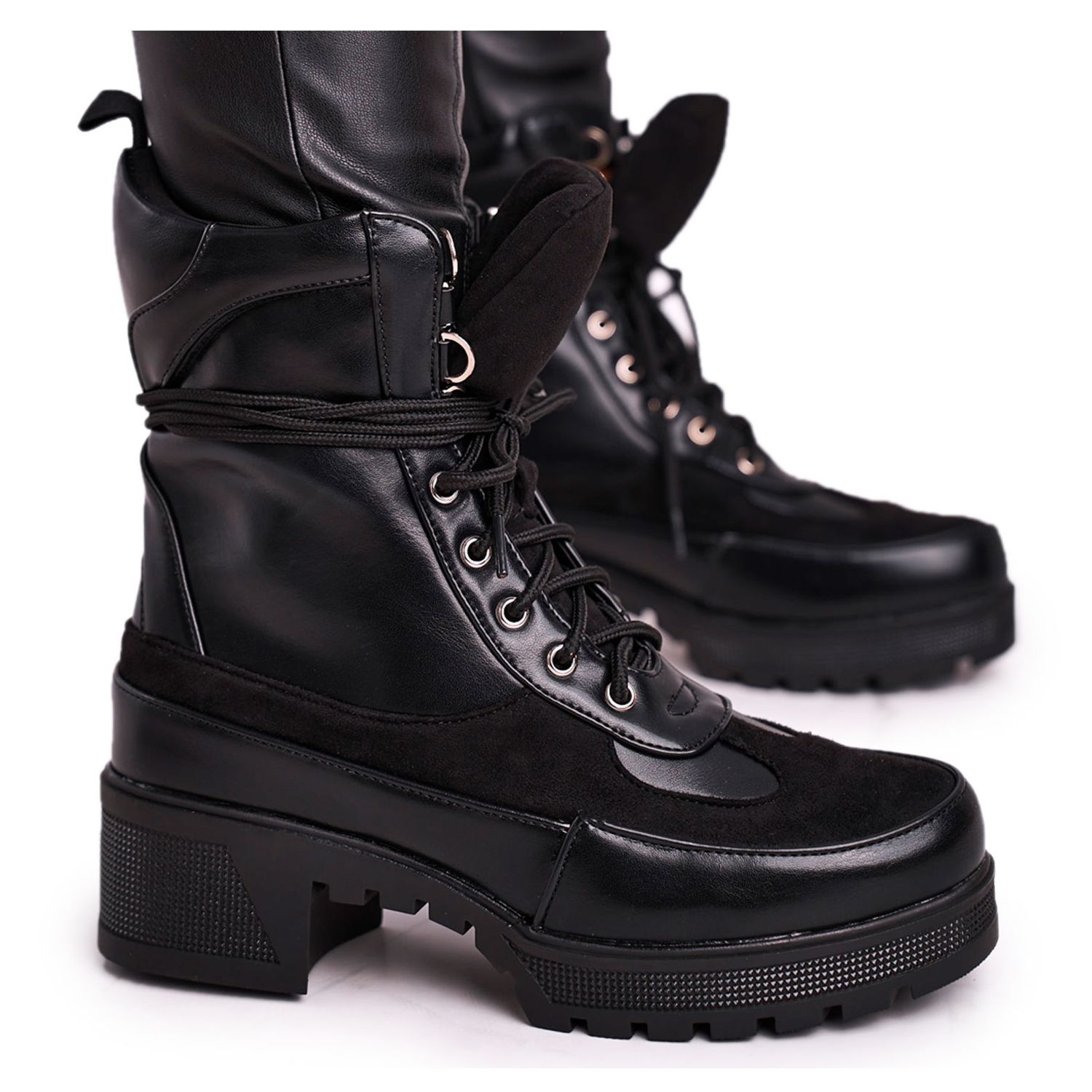 Die Innenseite der Stiefel ist mit einer Schuhdecke leicht isoliert, was an kälteren Tagen für angenehme Wärme sorgt. Die solide Schnürung sorgt für eine perfekte Passform am Fuß und sorgt für Stabilität und Tragekomfort. Eine dicke Sohle aus synthetischem Material kombiniert mit einem Blockabsatz mit einer Höhe von 5,5 cm machen diese Stiefel nicht nur stilvoll, sondern auch äußerst bequem.