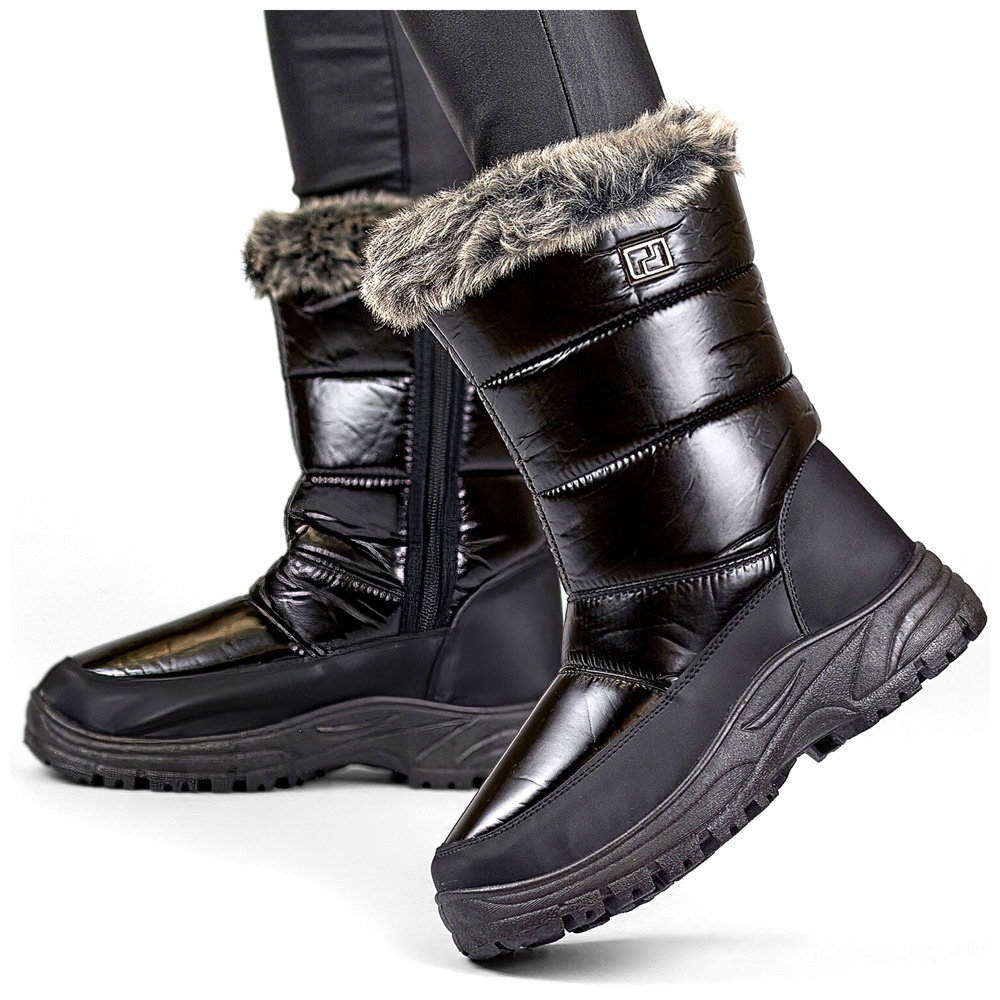 Details: Hohe, schwarze, isolierte Schneestiefel für Damen mit Fell, warme Winterschuhe