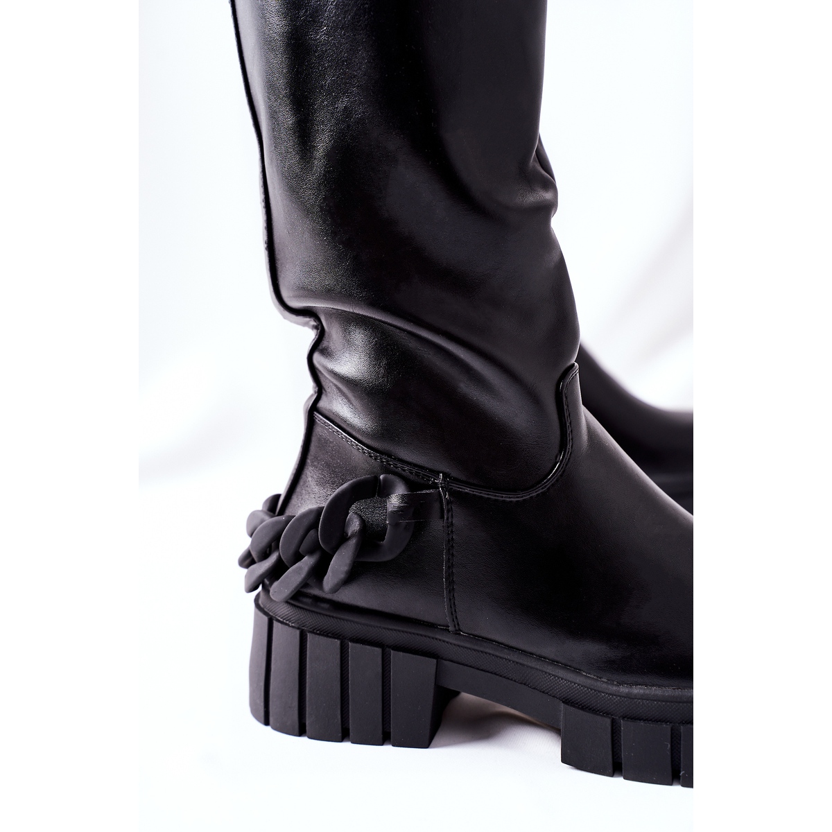 Inna marka Hohe schwarze Stiefel mit Kettenabriss