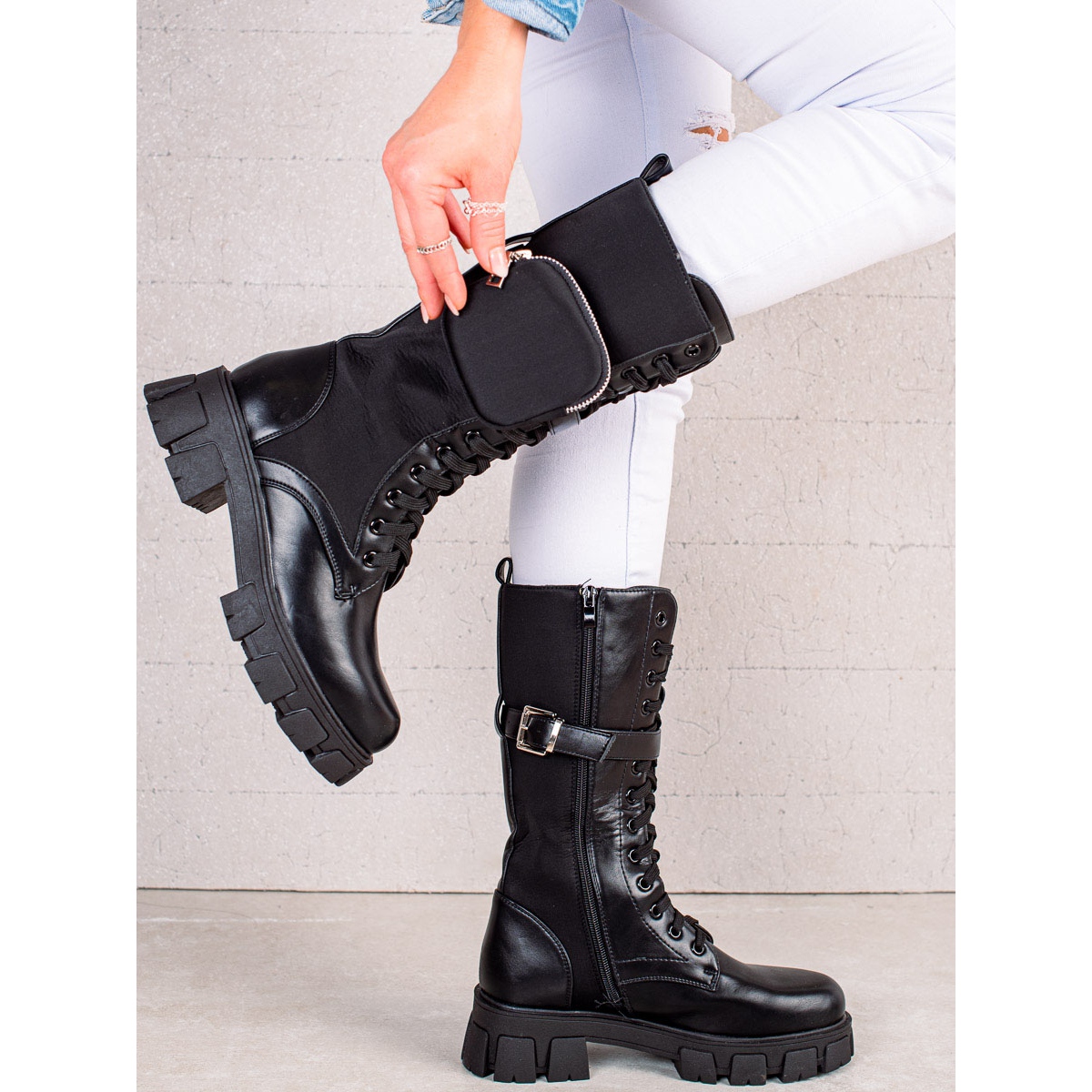 Hohe schwarze Stiefel mit Taschen sind nicht nur ein Schuhwerk, sie sind Ausdruck Ihres Stils und Ihrer Persönlichkeit. Sie eignen sich perfekt für Alltagsoutfits und funktionieren in jeder Situation. Zögern Sie nicht – fügen Sie sie Ihrer Sammlung hinzu und genießen Sie Mode, die Komfort und einzigartigen Stil vereint!