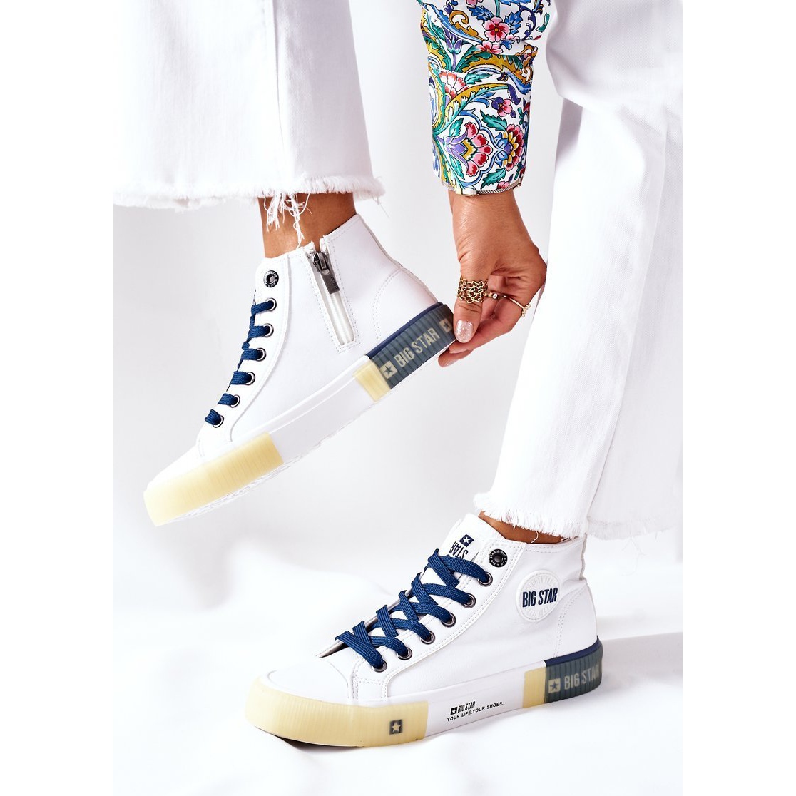Wir präsentieren die High-Top-Sneaker Big Star II274137 aus Leder in Weiß und Marineblau, perfekt für jede moderne Frau. Diese modischen Schuhe stammen von der polnischen Marke BIG STAR, die für ihre hohe Qualität und ihr stilvolles Design bekannt ist.