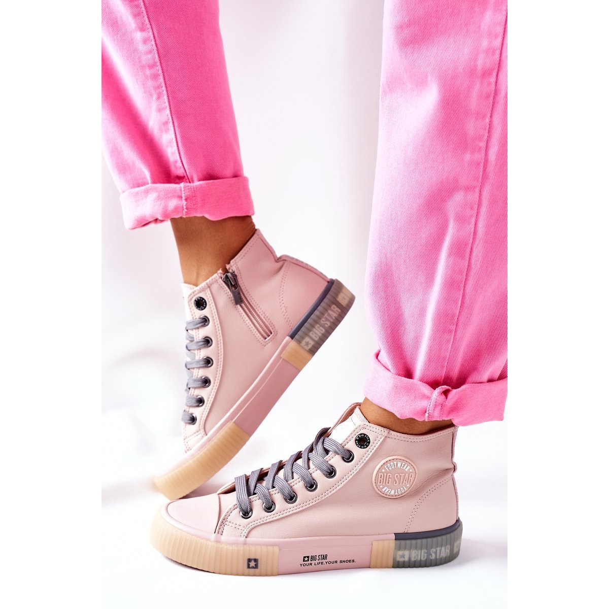 Diese rosa Sneaker sind ein Must-Have für jeden Modebegeisterten! Zögern Sie nicht und schauen Sie sich die gesamte BIG STAR-Schuhkollektion an, um Ihr neues Lieblingsschuhwerk zu finden, das Sie auf vielen stilvollen Abenteuern begleiten wird!