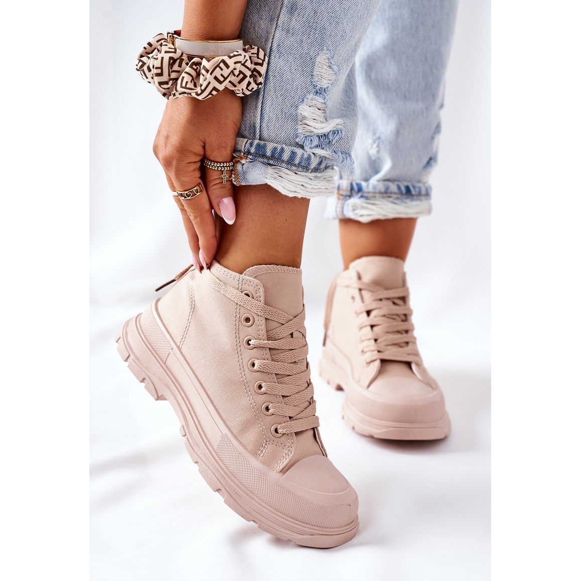 Details: FJ1 Hohe Sneakers Beige Trissy auf einer großen Sohle