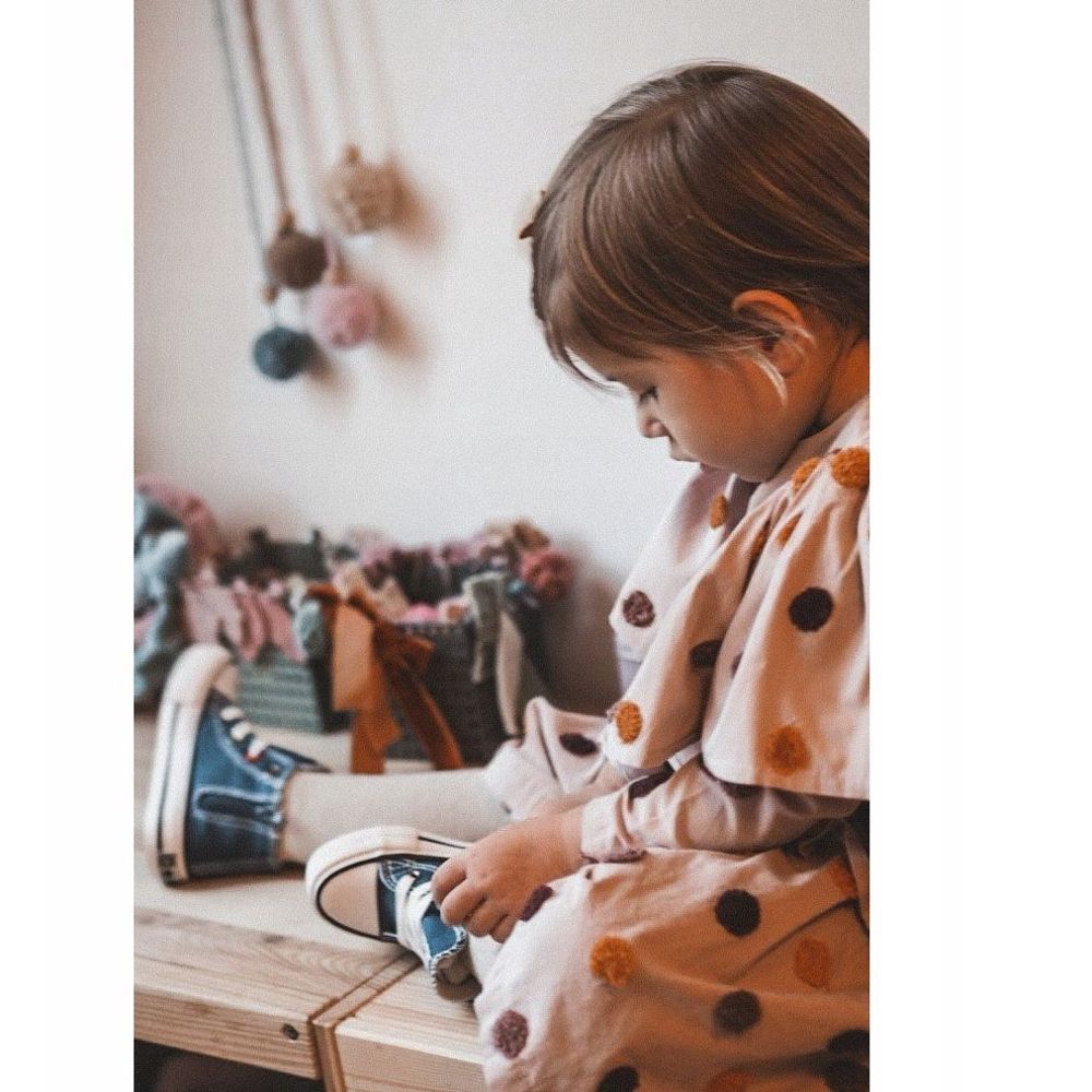 Die Sneaker sind aus strapazierfähigen Materialien gefertigt, resistent gegen äußere Einflüsse, was sie zu einem perfekten Begleiter bei alltäglichen Abenteuern macht. Ihr einzigartiges Design garantiert eine perfekte Anpassung an die Fußform eines Kindes und eine flache, rutschfeste, 2 cm hohe Sohle sorgt für Komfort und Sicherheit beim Laufen oder Springen.