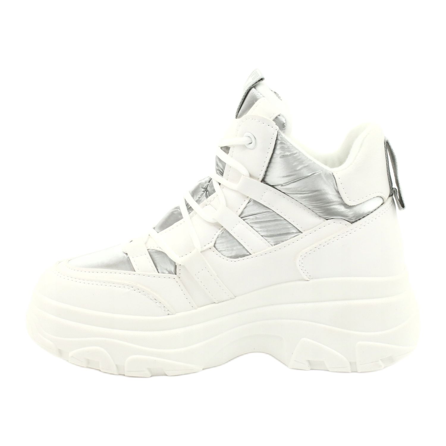 Entdecken Sie Komfort und Stil mit den hohen Sportschuhen Evento 20BT26-3192 in einer eleganten Kombination aus Weiß und Silber. Diese für den täglichen Gebrauch konzipierten Damen-Sportschuhe bieten dank der Verwendung einer flexiblen Gummisohle, die jeden Schritt perfekt dämpft, Komfort beim Freizeitwandern.