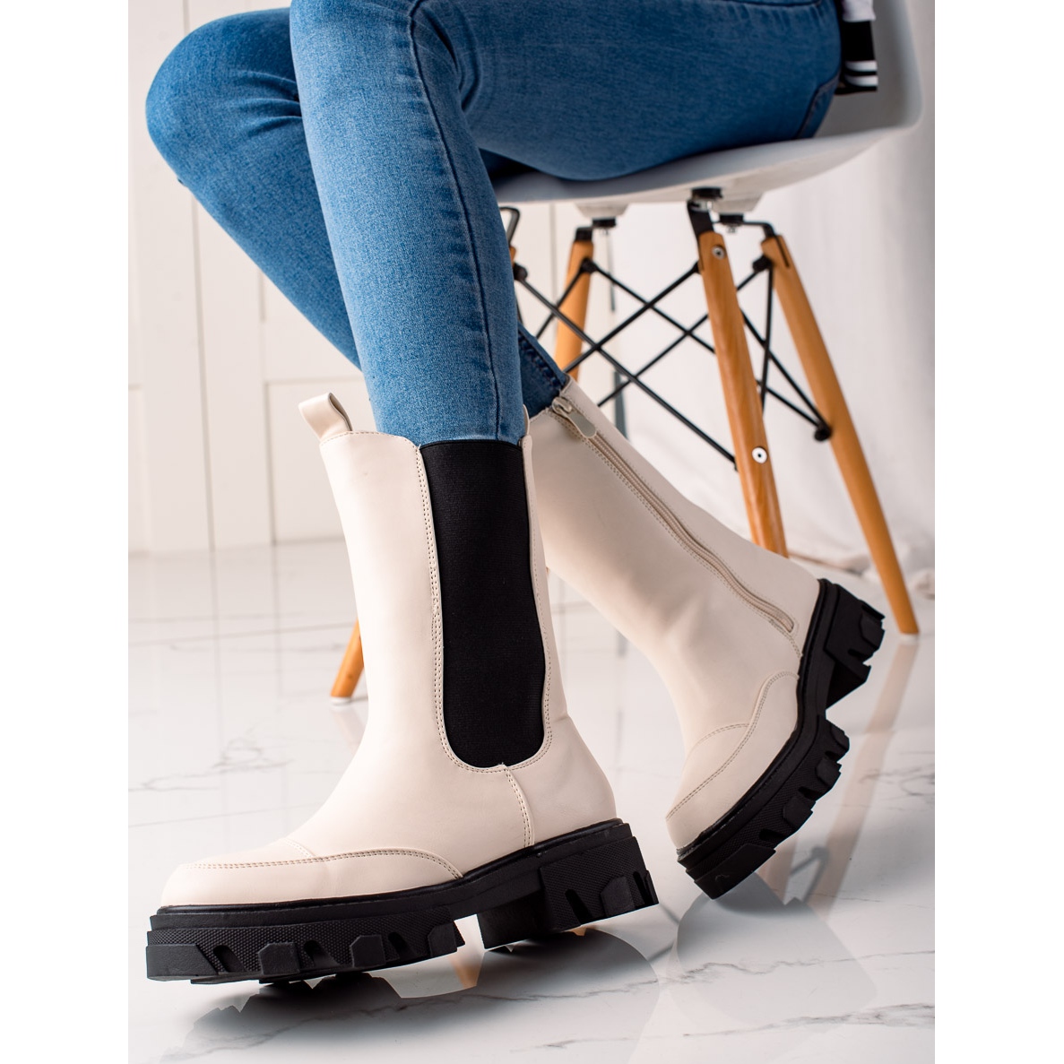 Durch die beige Farbe passen die Stiefel perfekt zu verschiedenen Stilrichtungen – von lässig bis elegant. Ohne Muster sind sie eine hervorragende Basis für kreative Modekombinationen. Neben ihrem ästhetischen Wert sind die Stiefel mit einem praktischen Reißverschluss ausgestattet, der das An- und Ausziehen erleichtert.
