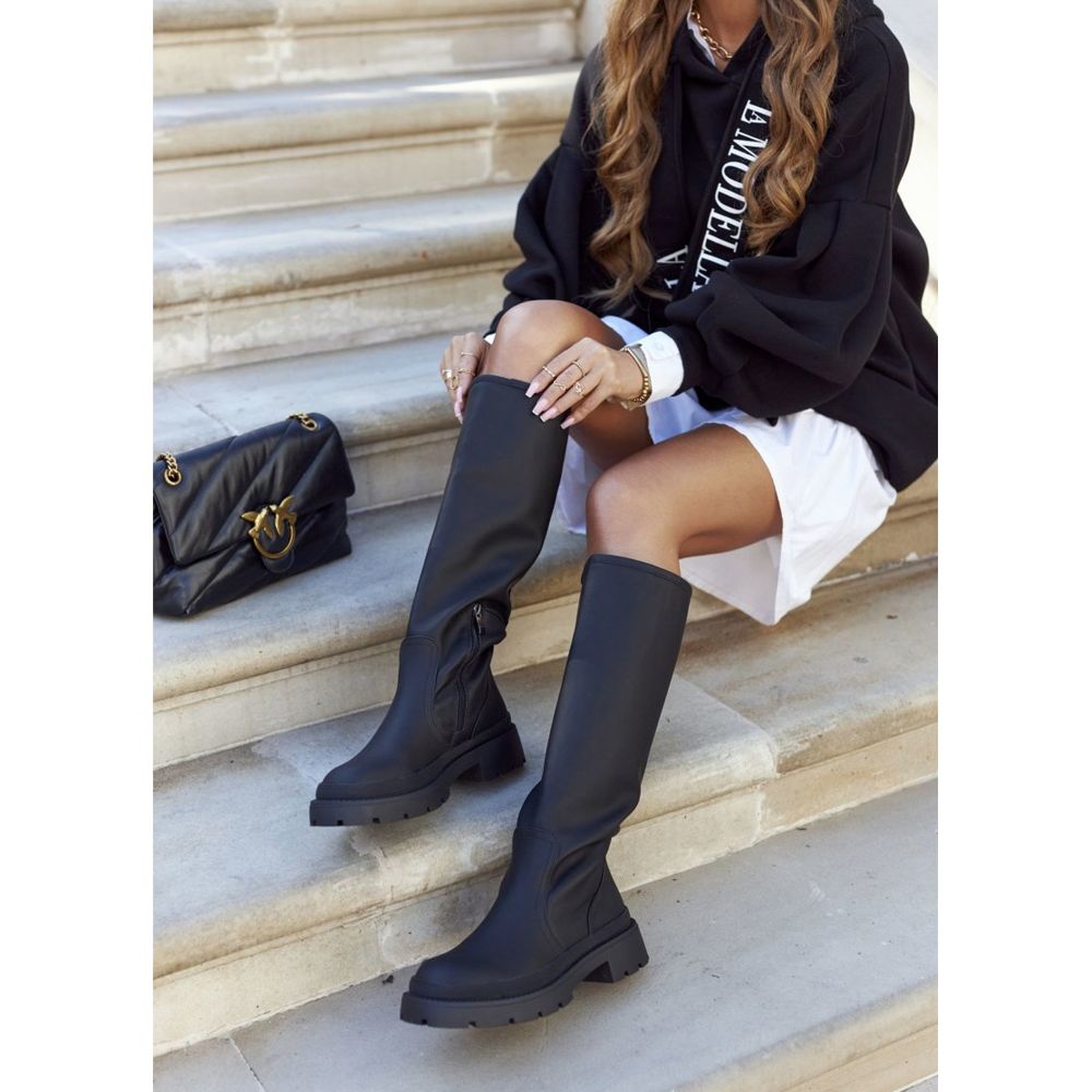 Details: S.Barski Hohe Stiefel für Damen Schwarz Whats Going On