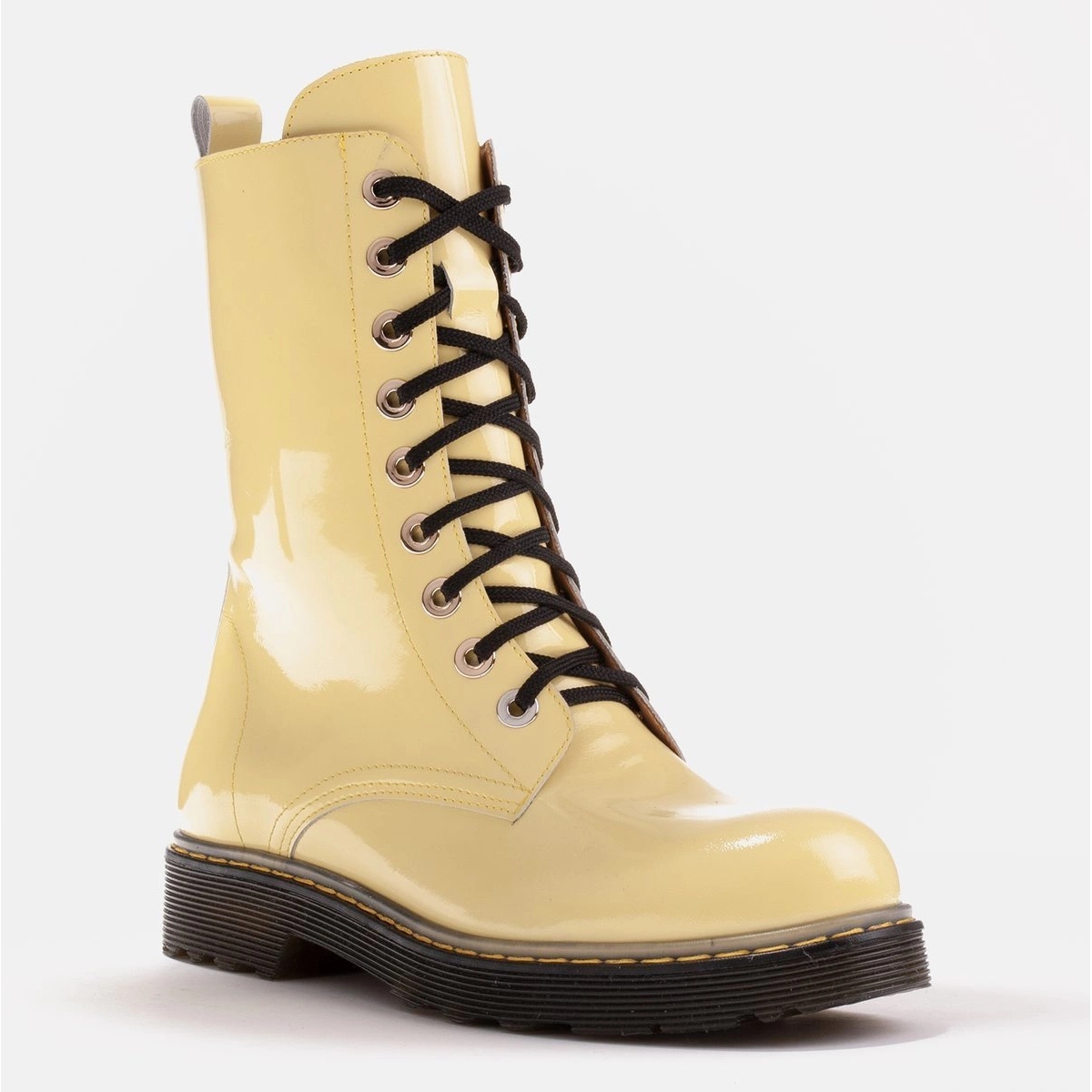 Marco -Schuhe - gelbe, hohe Stiefel mit einer halbtransparenten Sohle gebunden