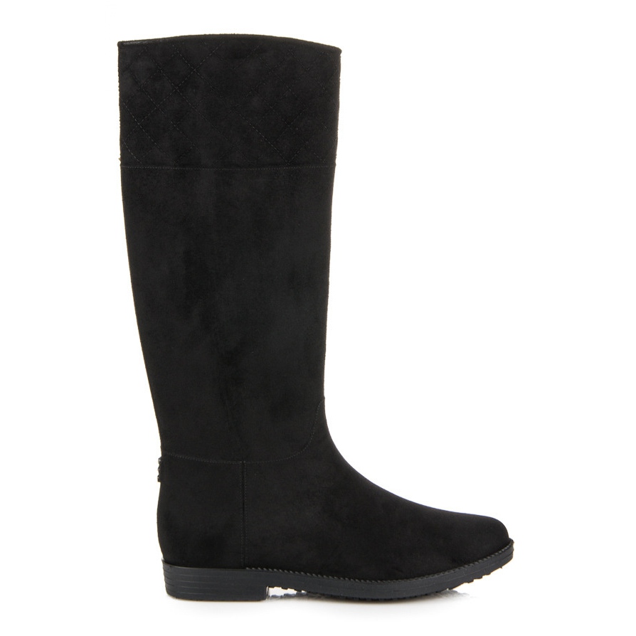 Hohe Wildleder-Gummistiefel in klassischem Schwarz sind die perfekte Wahl für Frauen, die Funktionalität mit modischem Stil verbinden möchten. Diese Gummistiefel aus Faux-Wildleder sehen nicht nur elegant aus, sondern sind auch umweltfreundlich. Ihre runde Spitze und der integrierte, weiche Absatz sorgen für ein angenehmes Tragegefühl und das Slip-on-Design erleichtert das An- und Ausziehen.