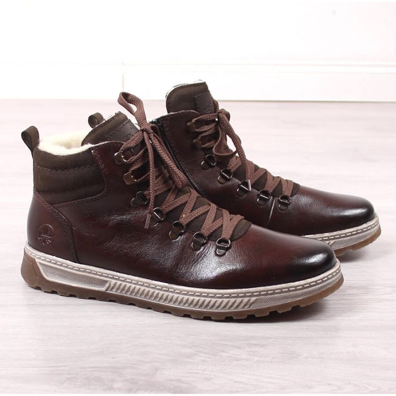 Elegant, funktional und komfortabel - hohe Winterstiefel Rieker M Rkr560 sind ein Vorschlag für Männer, die an kühleren Tagen Klassiker und Komfort schätzen. Sie bestehen aus natürlichen Leder mit universellen braunen Farben und arbeiten sowohl in alltäglichen, städtischen Stilisierungen als auch an Wochenendspaziergängen.