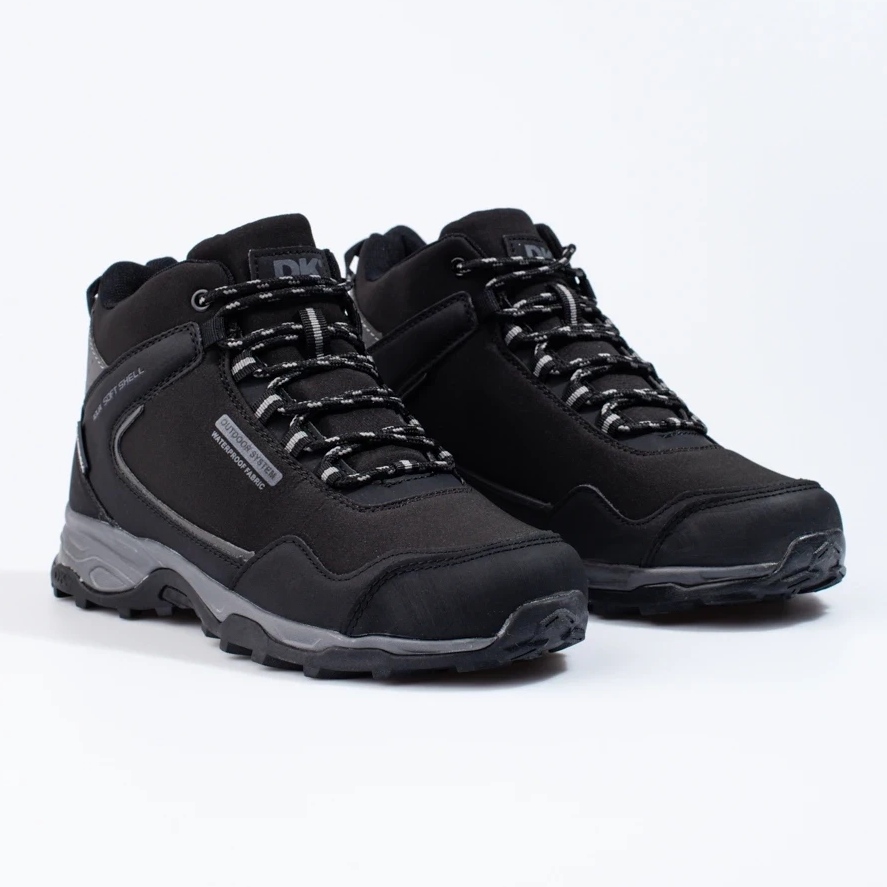 Solid, hohe DK -Trekking -Schuhe für aktive Männer, die während des Wander- und sportlichen Aktivitäten einen stabilen und bequemen Schutz benötigen. Klassische schwarze Farben werden mit funktionalen Lösungen kombiniert: gebaut -up, sanft gepolsterte Ferse, feste Schnürung und ein tiefer Beschützer einer Gummi -Sohle sorgt für eine gewisse Haltung des Fußes und der Haftung in einem unterschiedlichen Bereich.