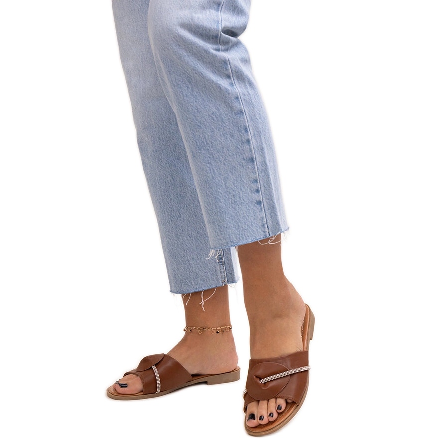 Diese Flip -Flops aus Bio -Leder sind nicht nur umweltfreundlich, sondern auch stilvoll aussehen. Außerdem geben Dekorationen in Form von Zirkonen einen eleganten Charakter, der sicherlich die Aufmerksamkeit auf sich zieht.