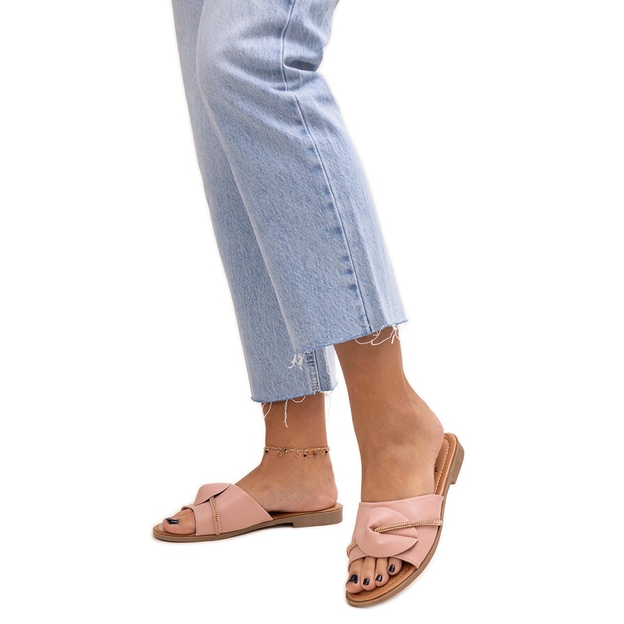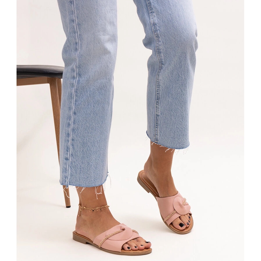 Kappen mit einem Gürtel mit rosa Amari -Zirkonen sind eine gute Wahl für Sommertage, die Komfort und modisches Design kombiniert. Dank des Slip and Round Nosk sorgen diese Flip -Flops im Laufe des Tages außergewöhnlichen Tragenkomfort. Ein stilvolles mit elegantem Zirkonen dekoriertes stilvolles Riemen verleiht ihnen einen einzigartigen Charakter und leuchtet jede Stiftung.