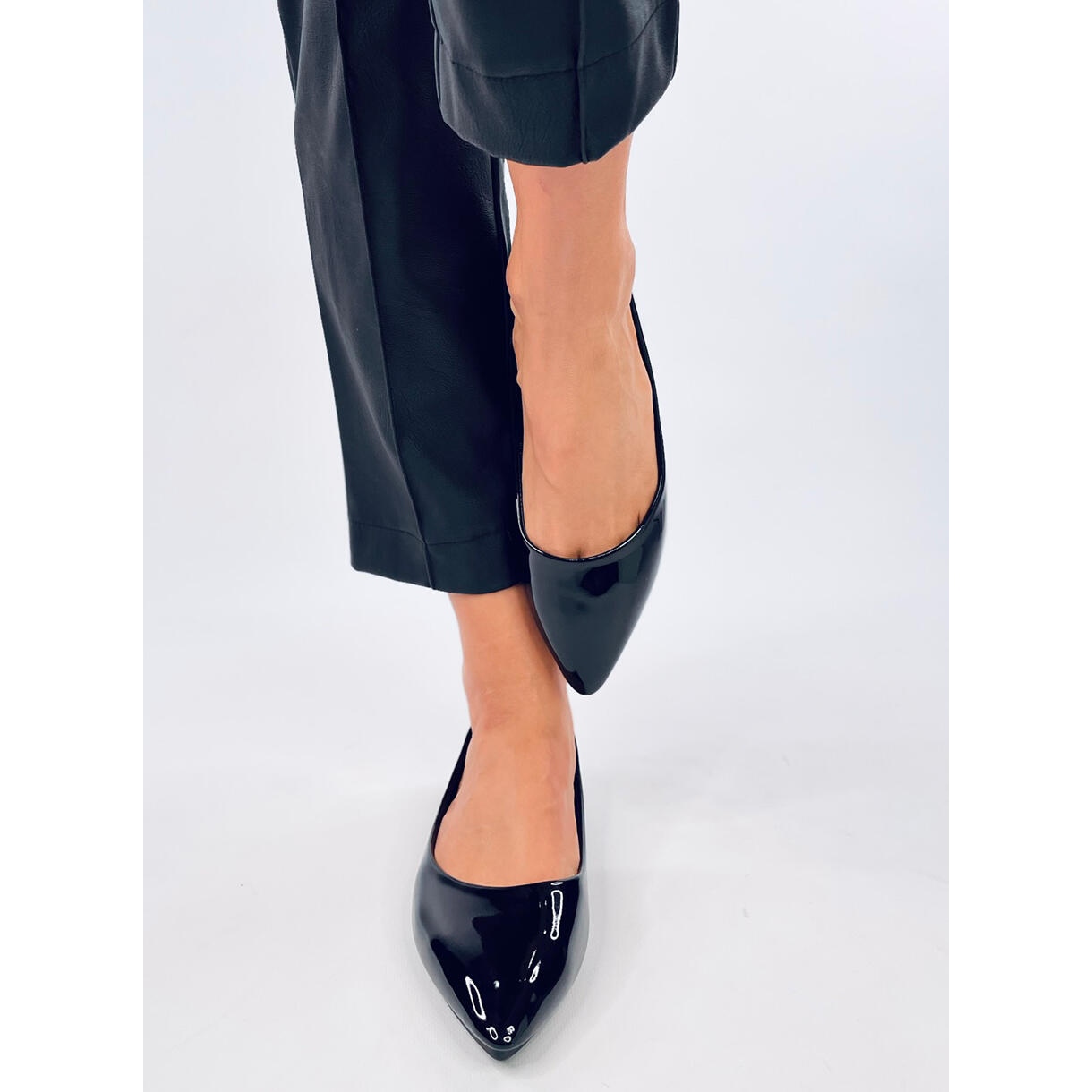Hier ist die perfekte Wahl für jede modische Frau - Lackierte IANS -Schwarze Ballerinas in einer eleganten schwarzen Farbe. Diese Schuhe zeichnen sich durch einen ordentlichen Schnitt mit Mandelzehen aus, der seit Jahren unermüdliche Popularität in der Modewelt genießt. Ihr klassisches Design lässt sie zu vielen Stilen passt - von lässiger bis hin zu eleganterem.
