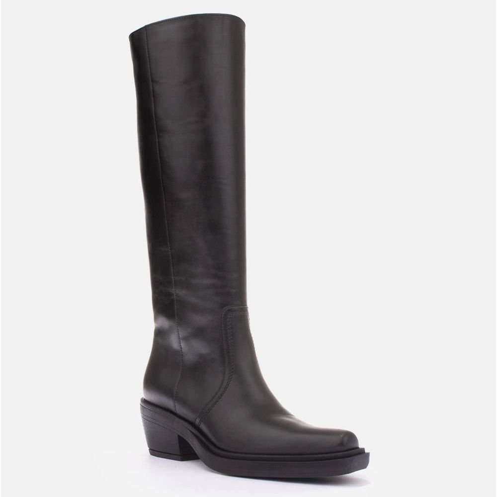 Elegante, zeitlose Imane Cowboy -Stiefel von Marco Shoes kombinieren einen klassischen Stil mit praktischen Lösungen für kühlere Tage. Hergestellt aus natürlicher Getreideleder in einer universellen schwarzen Farbe, mit Filzwärmen und einer bequemen Ziegelferse.