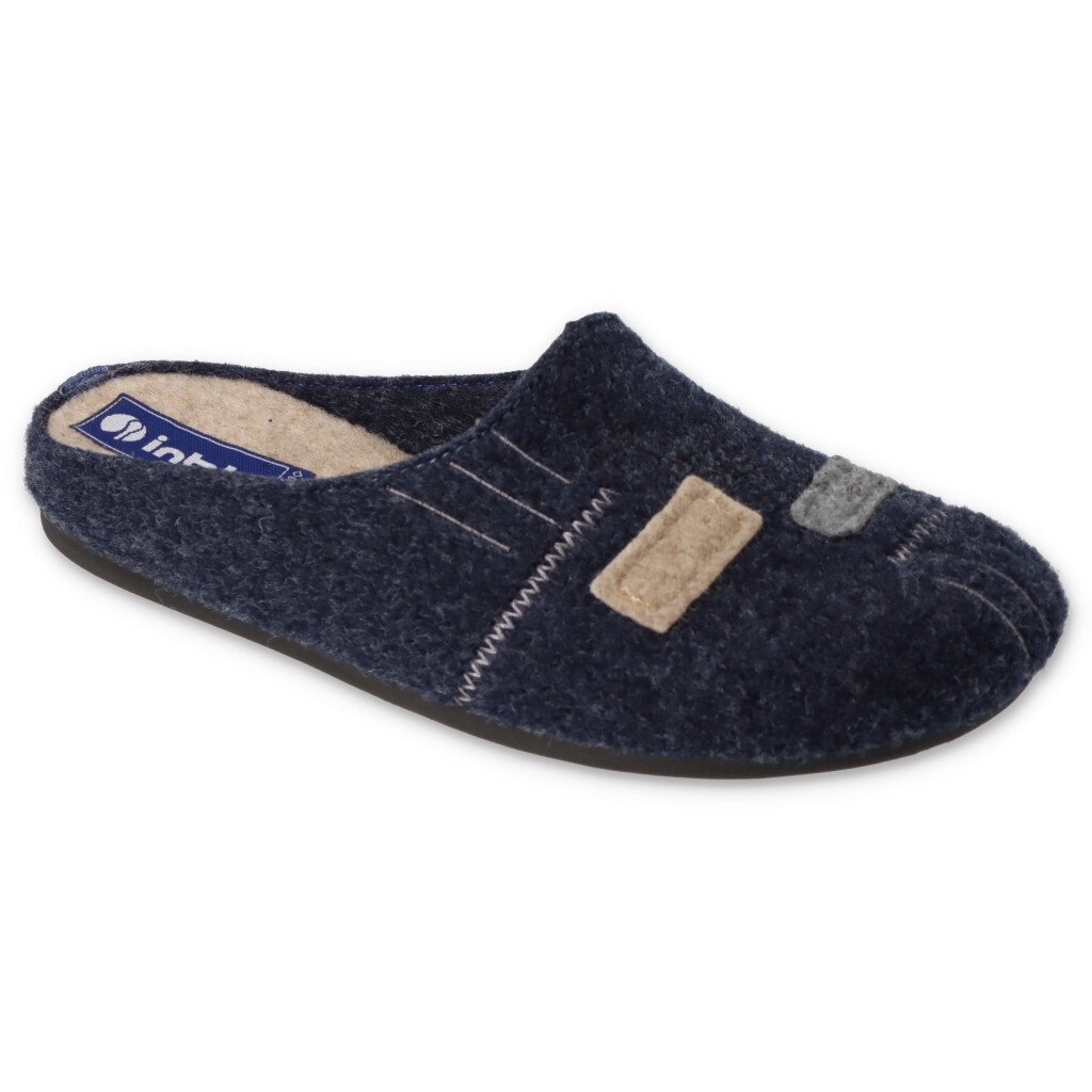 Wir bieten Herrenhausschuhe 155M014 der renommierten Marke Inblu an, die perfekt für kältere Herbst- und Wintertage sind. Ihre klassische dunkelblaue und graue Farbe und das minimalistische Design lassen sie elegant aussehen und zu jedem Heimoutfit passen.