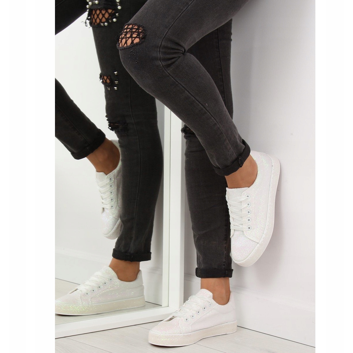 Wir präsentieren die atemberaubenden, schillernd weißen BL142-Sneaker in Lilatönen – die perfekte Wahl für Frauen, die in jeder Situation auffallen wollen! Diese Schuhe kombinieren einen klassischen, sportlichen Schnitt mit einem äußerst modischen Glitzer-Finish, was sie zu einem absoluten Unikat macht. Es ist nicht nur ein modisches Accessoire, sondern auch eine tolle Möglichkeit, Ihrem Alltags-Styling Glanz zu verleihen!