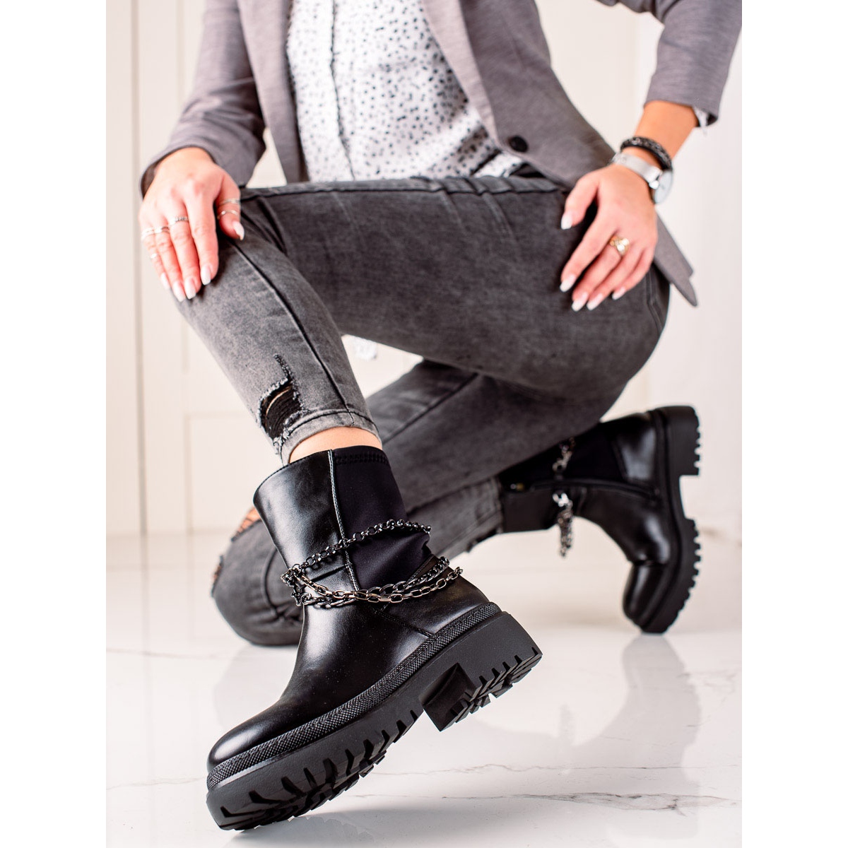 Entdecken Sie stilvolles und funktionelles Schuhwerk für die kommenden kalten Tage – Gogo Insulated Arbeiterschuhe mit Ketten in Schwarz. Diese Damenstiefeletten passen perfekt zu einem lässigen, rockigen Stil und eignen sich sowohl für alltägliche Spaziergänge als auch für informelle Meetings.