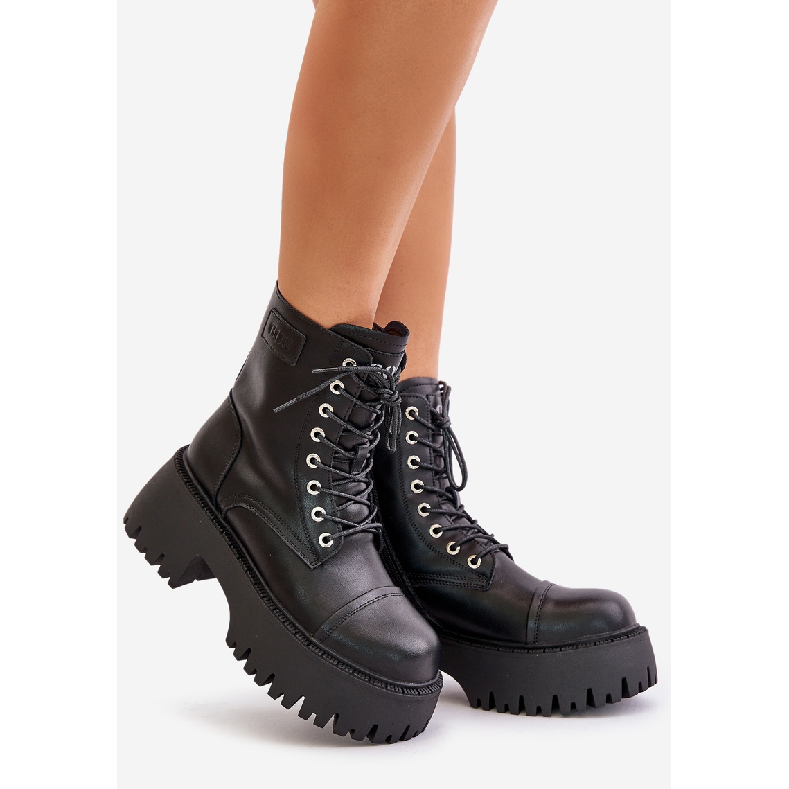 Setzen Sie sich auf eine massive Plattform von 7 cm hoch und flache Absätze und sorgen Sie für jeden Schritt Stabilität und Komfort, was sie zur perfekten Wahl für kühlere Tage macht. Das Schloss und die Schnürung sind praktische Lösungen, mit denen Sie den Fuß leicht entsprechen können, dank der sie zu einem wirklichen Vergnügen werden.