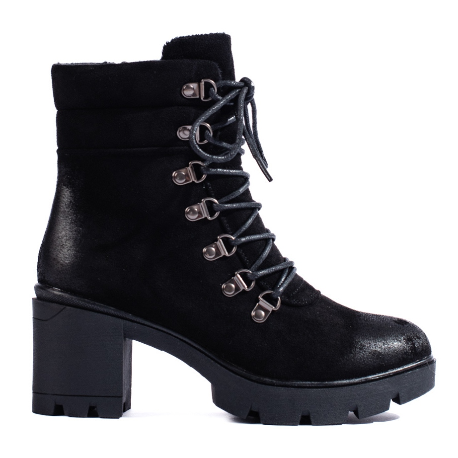 Elegante und praktische Arbeiter, die einen lässigen Stil mit einer subtilen Note des Stils verbinden. Hergestellt aus ökologischem Wildleder, perfekt für kühlere Tage dank der warmen Erwärmung - einer weichen Schuhedecke. Universal Black und Classic Cut lassen sie sowohl täglich als auch während der Abendausflüge arbeiten.