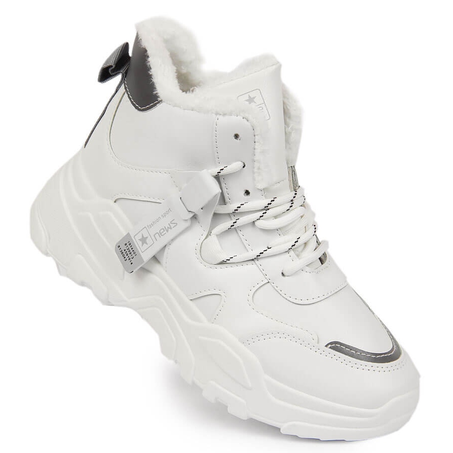 Wir präsentieren isolierte Damen-Sneaker mit dicker Sohle – ein echter Hit der Saison! Das Modell NEWS ist die perfekte Kombination aus Mode und Komfort und eine perfekte Ergänzung sowohl für den Alltags- als auch für den Sportstil. Weiße Schuhe zeichnen sich durch ihr modernes Design und die stilvolle Verarbeitung aus, die Aufmerksamkeit erregt.