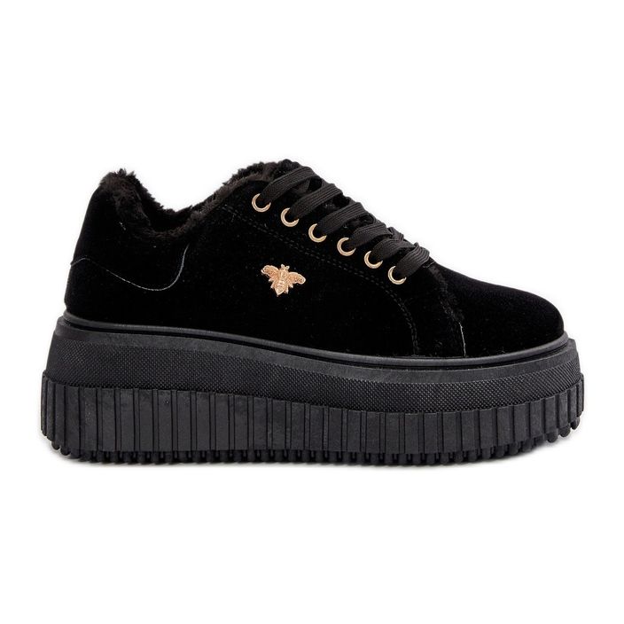 Inna marka Isolierte Damen-Sneaker mit dicker Sohle und Golddetail, Black Lotira schwarz