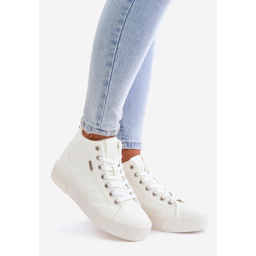 Weiße Big Star -Turnschuhe mischen sich perfekt in verschiedene lässige und elegantere Stilisierungen ein. Dank ihres klassischen Designs und ihres Mangels an Designs sind sie eine perfekte Ergänzung für jede Garderobe.