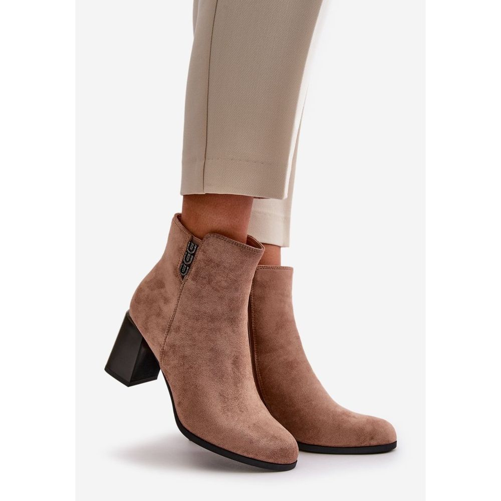 Inna marka Isolierte Damenstiefel aus Öko-Wildleder mit hohem Absatz, mit Reißverschluss befestigt, Braun Erillia beige
