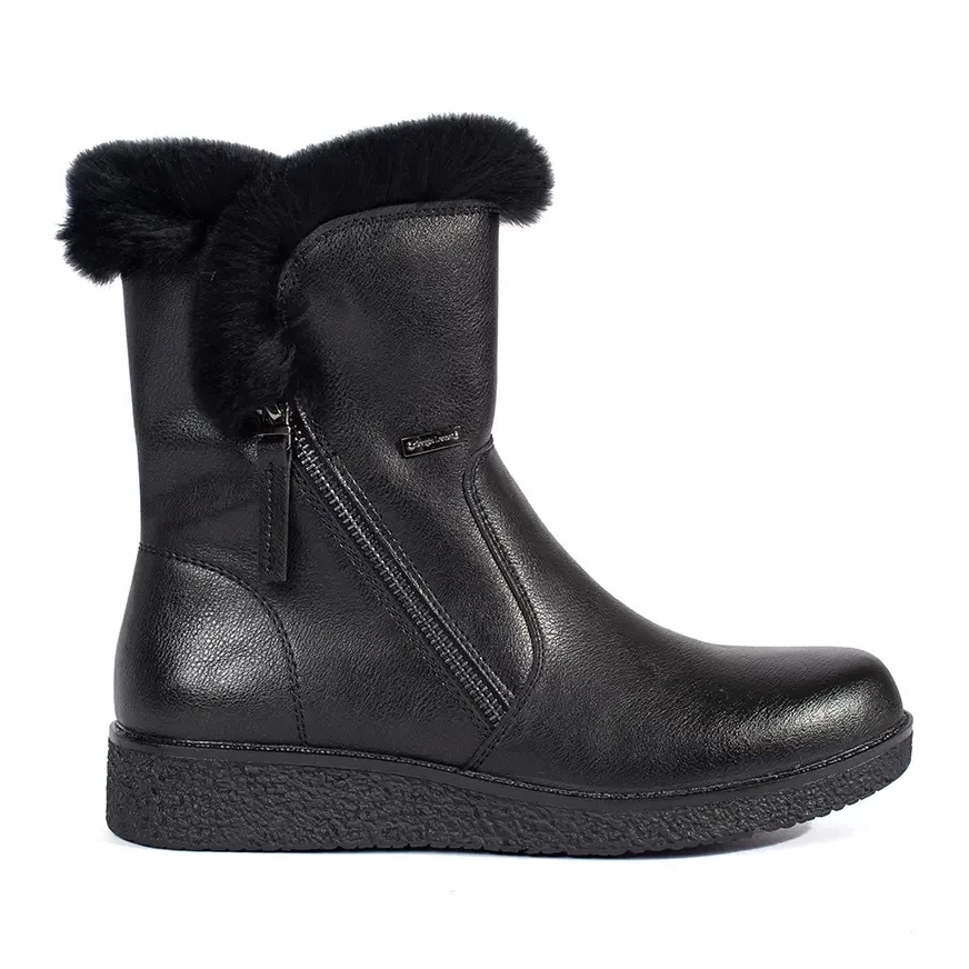 Isolierte Lederschwarz -Frauenstiefel mit Sergio Leone Fell sind eine ausgezeichnete Wahl für kühlere Tage. Diese eleganten Schuhe bestehen aus hochwertigem natürlichen Nubuck -Leder und kombinieren Komfort und Stil und sorgen auch an den kältesten Tagen.