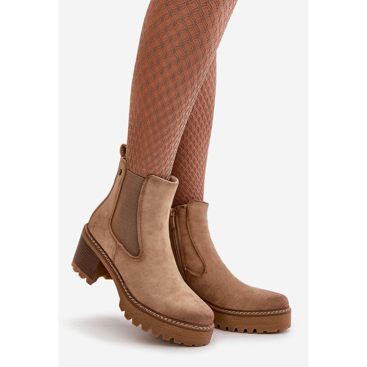 Details: Isolierte Damenstiefel mit hohem Absatz, Öko-Wildleder, Beige Irissinae