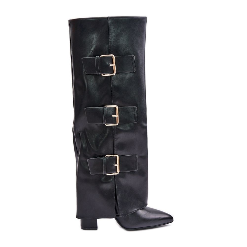 Inna marka Isolierte Damenstiefel mit hohem Absatz, umgeschlagenem Schaft und Schnallen, Black Pyregonia schwarz