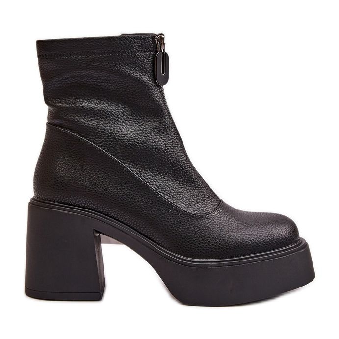 Stiefel auf einer soliden Plattform mit einer Höhe von 3,5 cm und einer Ferse in Form einer Säule mit einer Höhe von 8 cm eingestellt und verbinden das moderne Design mit Funktionalität. Abgerundete Nasen fügen eine Subtilität hinzu, und das isolierte Agent aus der Schuheklinge garantiert auch an den kältesten Tagen Wärme. Eine perfekte Ergänzung zur Ästhetik ist ein dekoratives Schloss vorne und ein praktischer Reißverschluss, das auf der Seite platziert wird, was es einfacher macht, einzuziehen und abzunehmen.