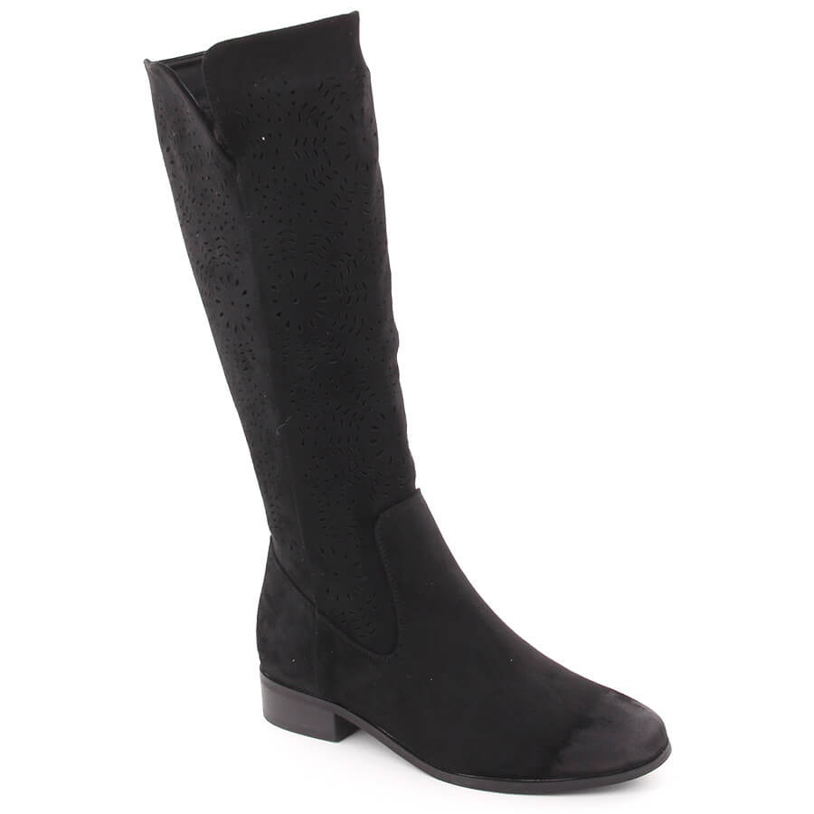 Details: Isolierte durchbrochene Damenstiefel aus Wildleder, schwarz Potocki 12522