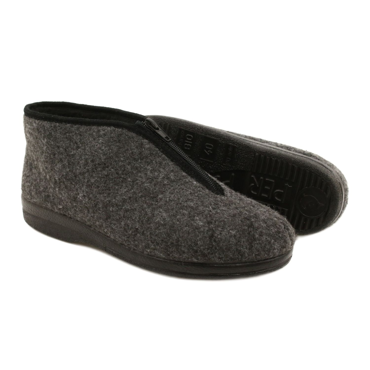 Warme und bequeme Hausschuhe für Männer, die selbst an den kältesten Tagen Komfort sorgen. Der äußere Teil aus Filz und Pelzgut garantiert ein angenehmes Mikroklima für die Füße, und die helle, profilierte und flexible Sohle von PU sorgt für Stabilität und Weichheit jedes Schritts. Das erhöhte Obermaterial und das Schloss erleichtern es, den Fuß sicher zu legen und zu halten.