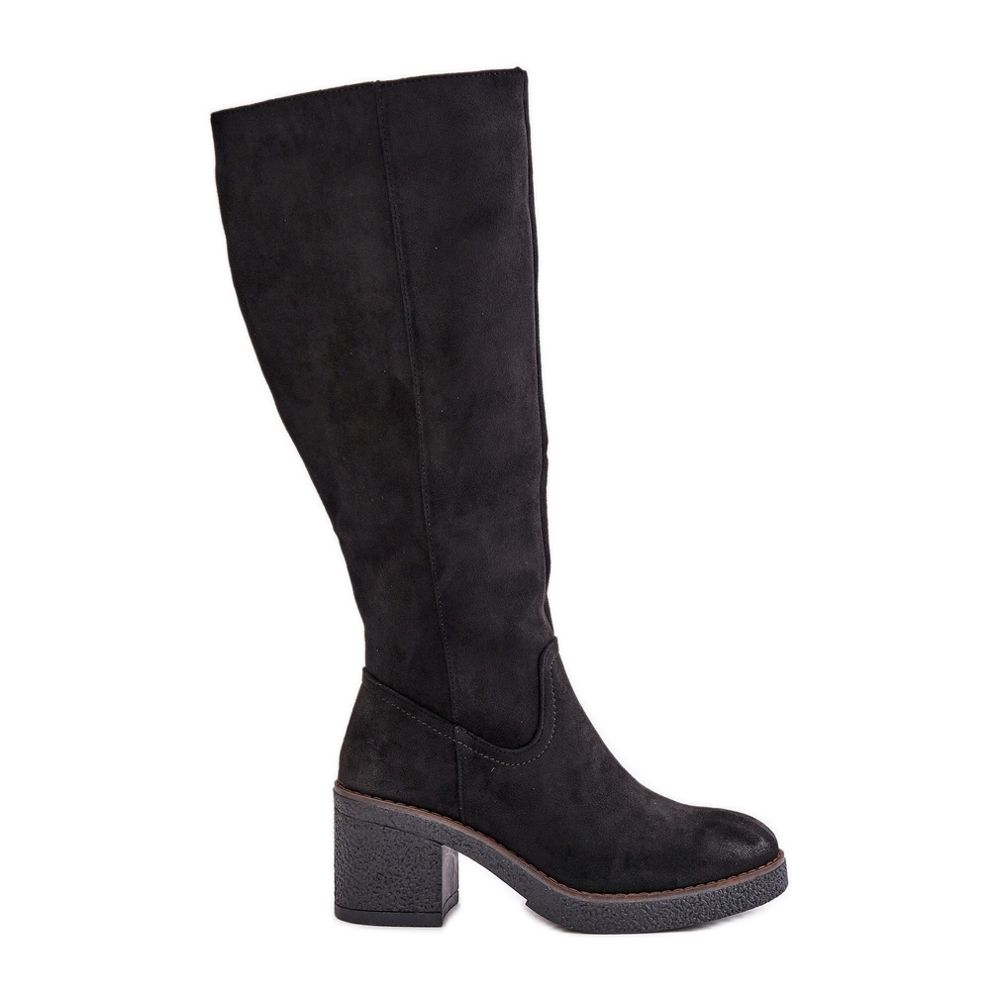 Jezzi Jezzi Isolierte High-Heel-Stiefel aus Öko-Wildleder, über dem Knie, Schwarz Leamirael