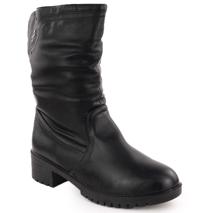 Stiefel haben eine angenehme Erwärmung mit Fell sowohl im Futter als auch im Einsatz, was sie zu einer guten Wahl für kühlere Tage macht. Bequemer Zunahme und flache Ferse mit einer Höhe von 5 cm sorgen für Stabilität und Komfort, den ganzen Tag zu tragen.